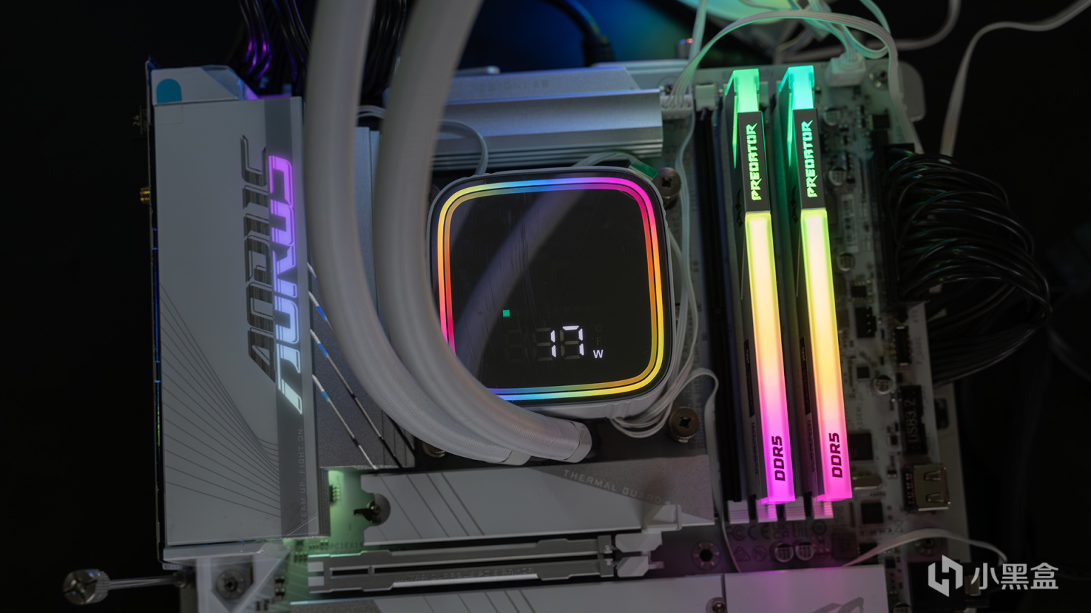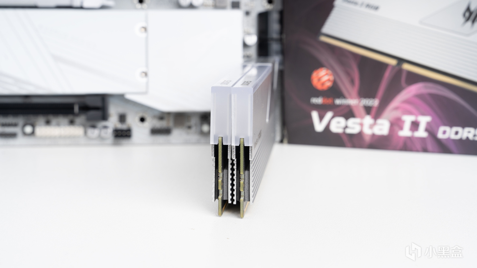 因爲擁有巨大的散熱馬甲設計,Vesta II RGB DDR5整體高度來到50mm左右,對應目前大部分主流AIO水冷方案自然不成問題,而使用大型風冷散熱器的玩家就需要關注一下兼容性問題了。