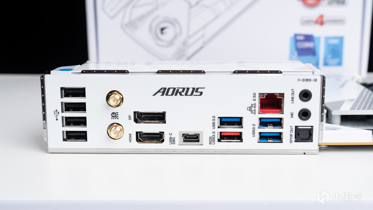 主板採用一體式的白色I/O擋板,擁有4*USB 2.0、Wi-Fi 6E無線網絡、1*HDMI、1*DP、1*USB 3.2 Gen 2x2 Type-C、1*USB 3.2 GEN 2 Type-A(紅色)、3* USB 3.2 GEN 1 Type-A、2.5G網口以及ALC 897音頻芯片驅動的接口(帶數字光纖輸出)這些配置,接口的豐富性是到位的,滿足主流玩家不在話下。