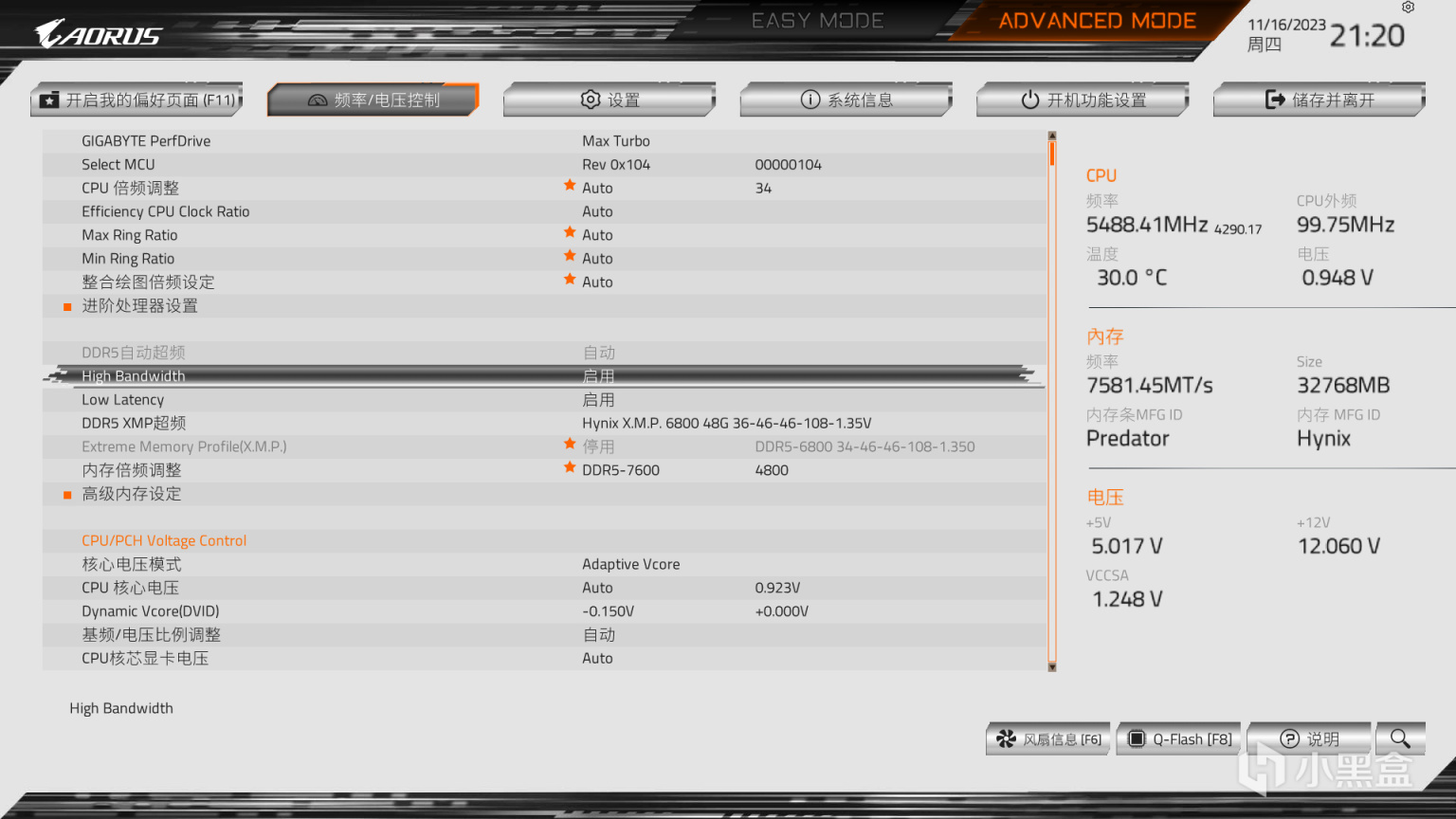 測試之前先進BIOS看看,技嘉X系列主板BIOS是有全新升級之處的,在EASY MODE中就能看到不少新選項整合在裏面,包括Resizable BAR、High Bandwidth(高帶寬)、Low Latency(低延遲)這些實用性很強也能第一時間找到,尤其對於硬件小白來說非常友好。