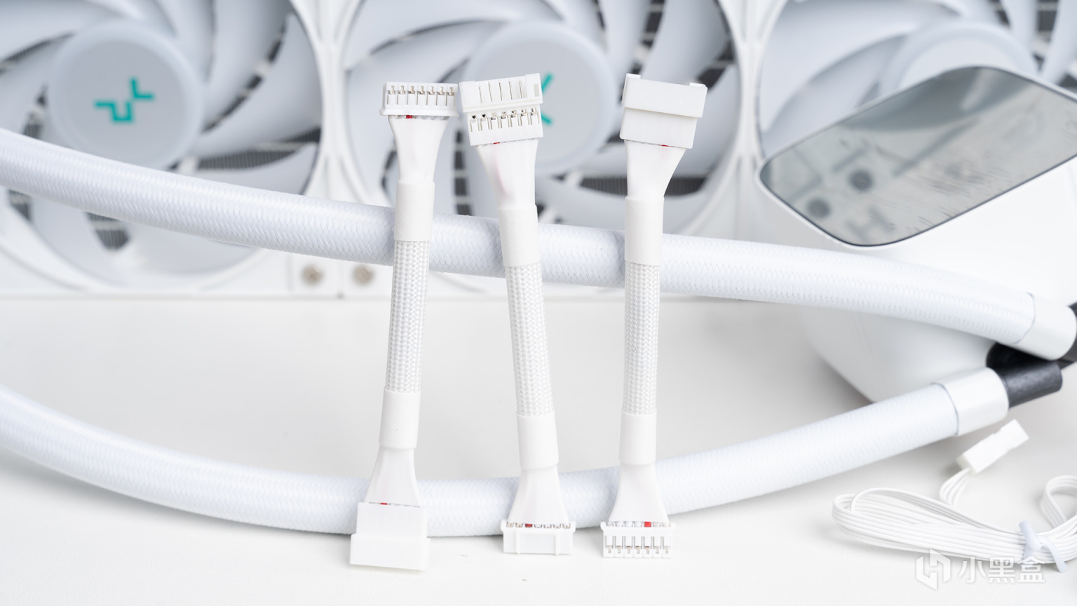 水冷配件中自帶三根減速轉接線,如果追求更安靜的使用環境,可以用它接上風扇能降低不少噪聲,作爲一款400元級的水冷產品細節依然到位,這點無疑值得讓人點贊。