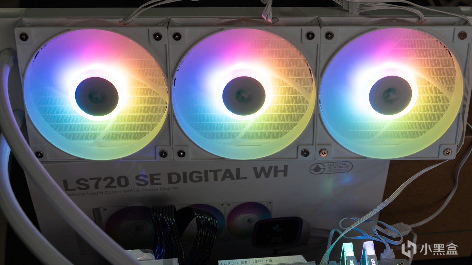 通電效果,冰堡壘360數顯版冷頭是有環狀ARGB燈效的,數顯屏顯示效果也很精細,個人就對花裏胡哨的GIF動畫、視頻不感冒,這種低成本方案挺適合的。