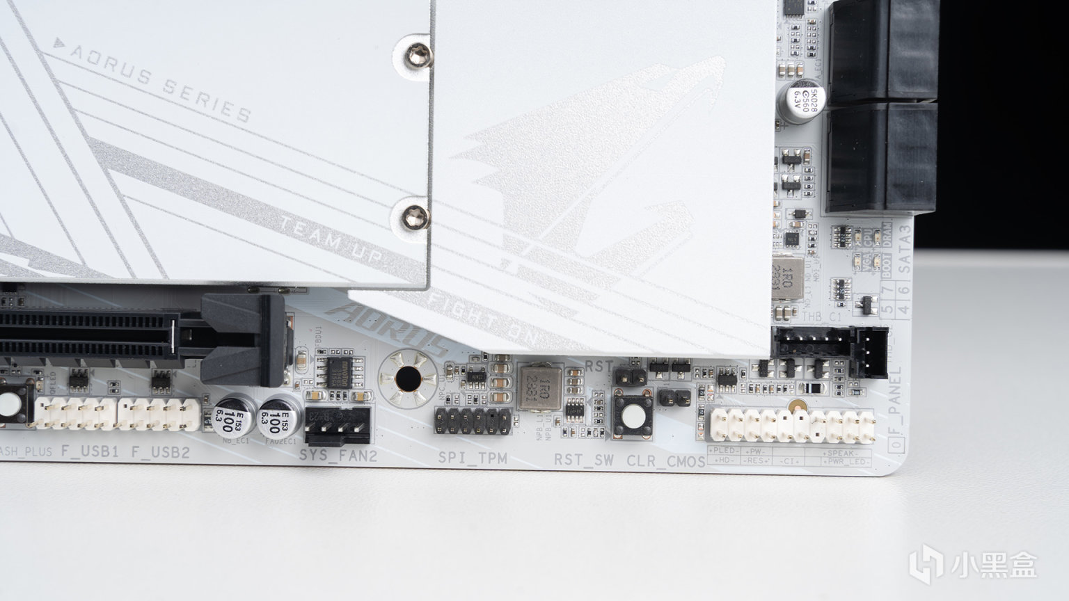 在主板右下角部分,帶有RST_SW簡易重啓按鈕,這也是一個千元級主板難得的配置,旁邊就是CLR_CMOS插針,除了使用螺絲刀短觸以外,也能接到機箱I/O按鈕上更方便。