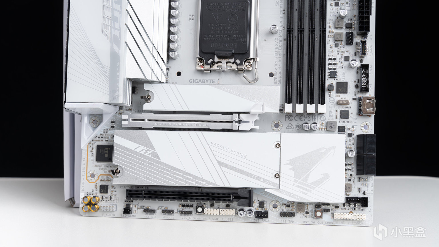 B760M冰雕X外觀,第一眼看到只能說非常驚豔,從PCB到散熱裝甲都是貫徹到底的雪白色配裝,純白B760M並不是什麼罕見之物,關鍵是敢在千元級這個競爭激烈的區間中立足,要知道千元級主板得迎合主流玩家的各種需求,本身就是一件很挑剔的事情,而B760M冰雕X最靈魂之處就是它純白PCB下還伴隨着各種細節升級以及強勁性能。