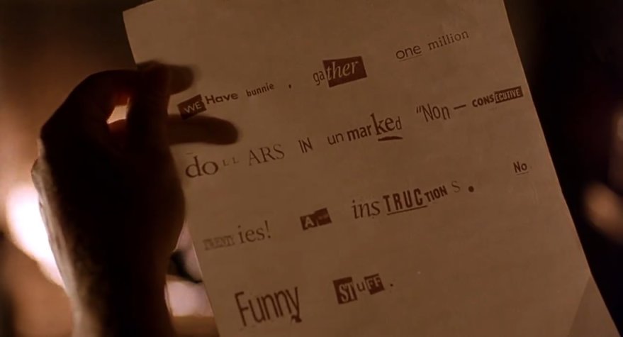 來自於1998年科恩兄弟導演的《謀殺綠腳趾》(The Big Lebowski)中勒索信情節。