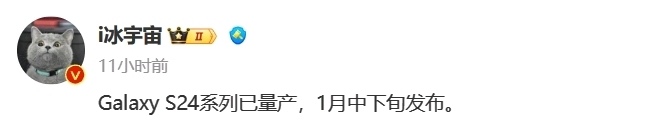 ◇ 發佈日期:據i 冰宇宙今日爆料,三星目前開始量產 Galaxy S24 系列手機,並預估三星將會在明年 1 月中下旬發佈。