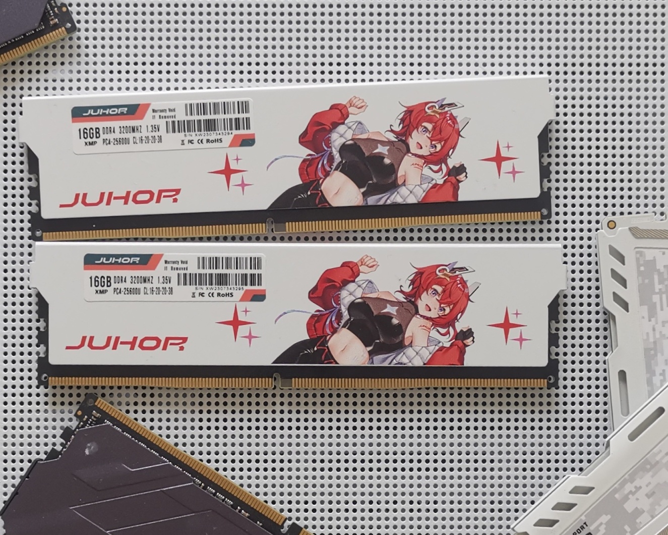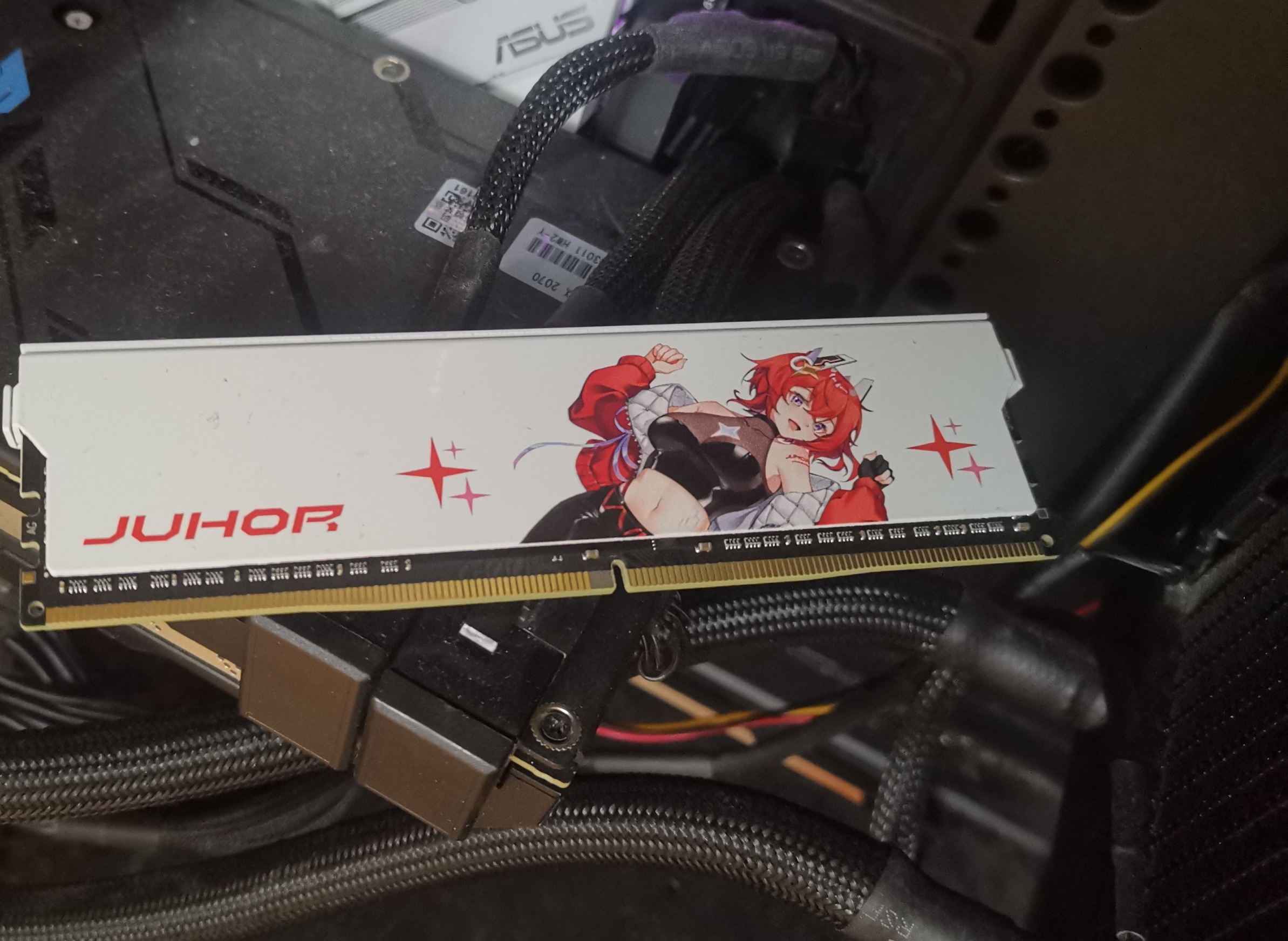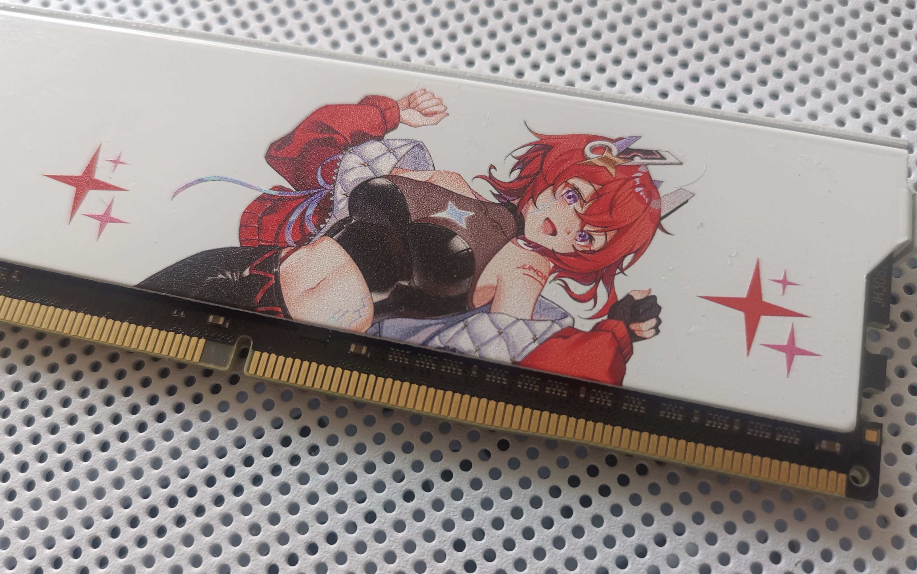 儘管在我的機箱內有些突兀,但平心而論,“星舞”內存的外觀確實不錯。當然,二次元IP固然引人注目,但更令我感興趣的,還是這套內存的主要賣點、那藏於散熱片之下的“海力士芯片”。