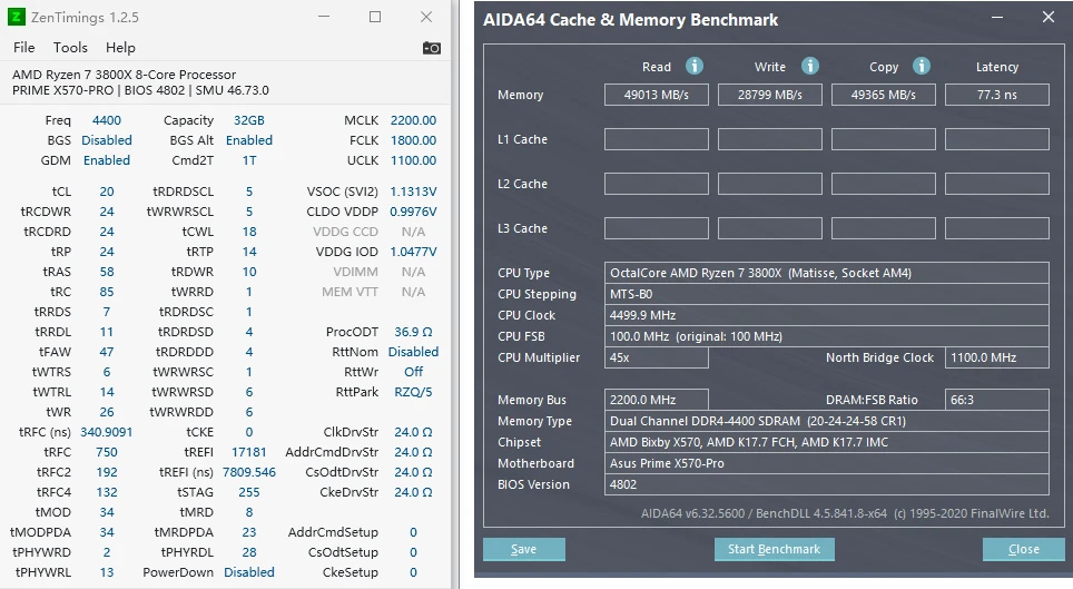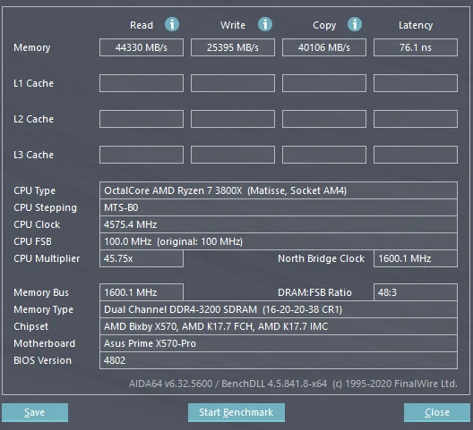 相比JEDEC標準下的3200Mhz內存,XMP參數的CL16時序要低得多。這令“星舞”有着更高的帶寬,延遲表現自然也好上不少。