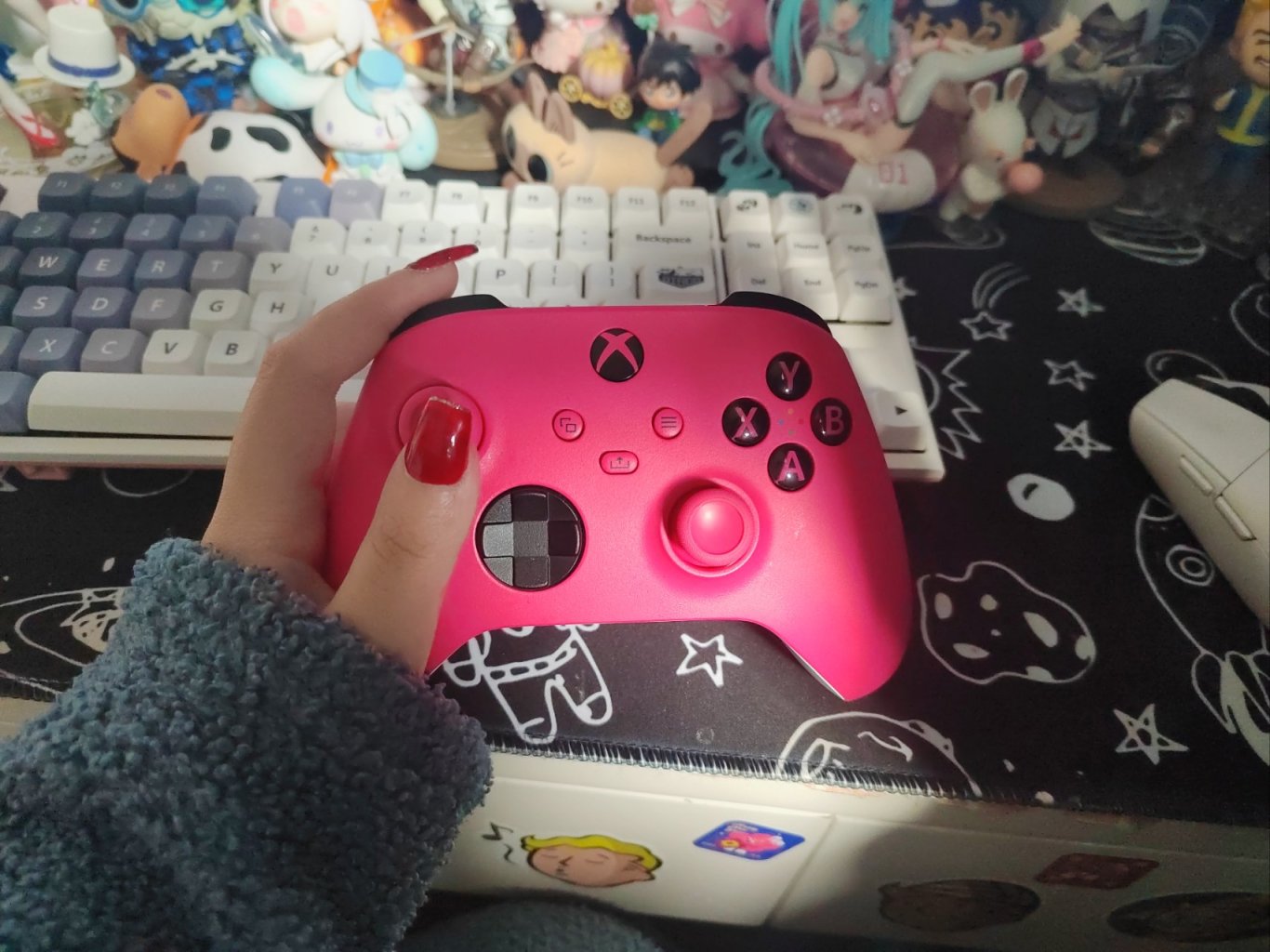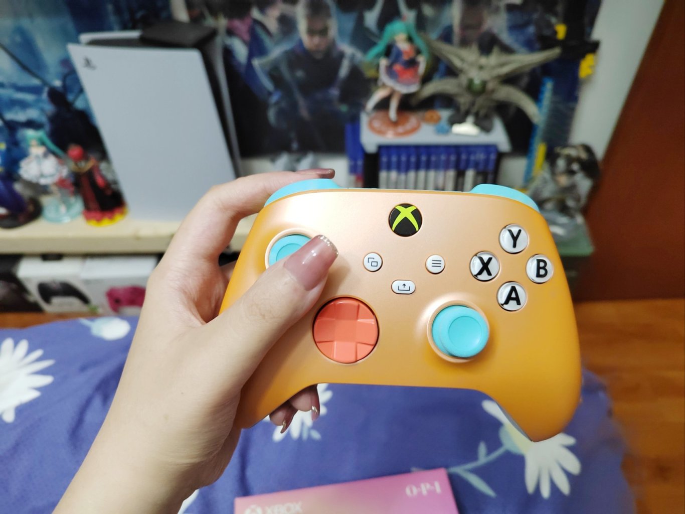 當時玩着覺得手柄有線不太方便,就去買了一個黑色的xboxone無線手柄(也找不到了),後來出ones手柄之後可選的顏色款式就很多了,最早買的小藍和粉豬