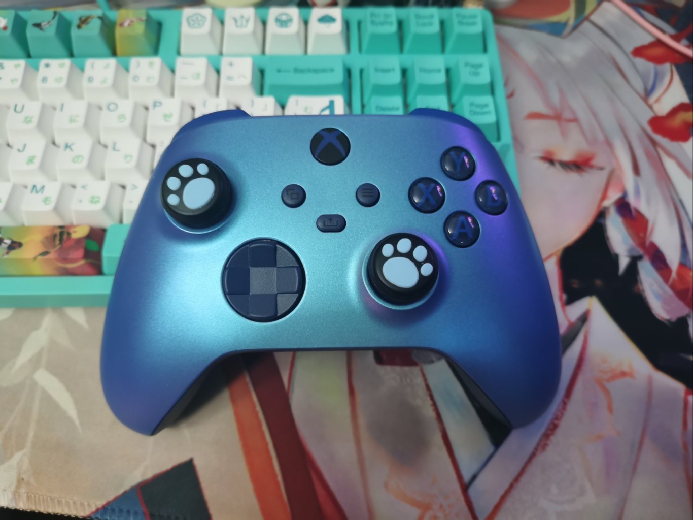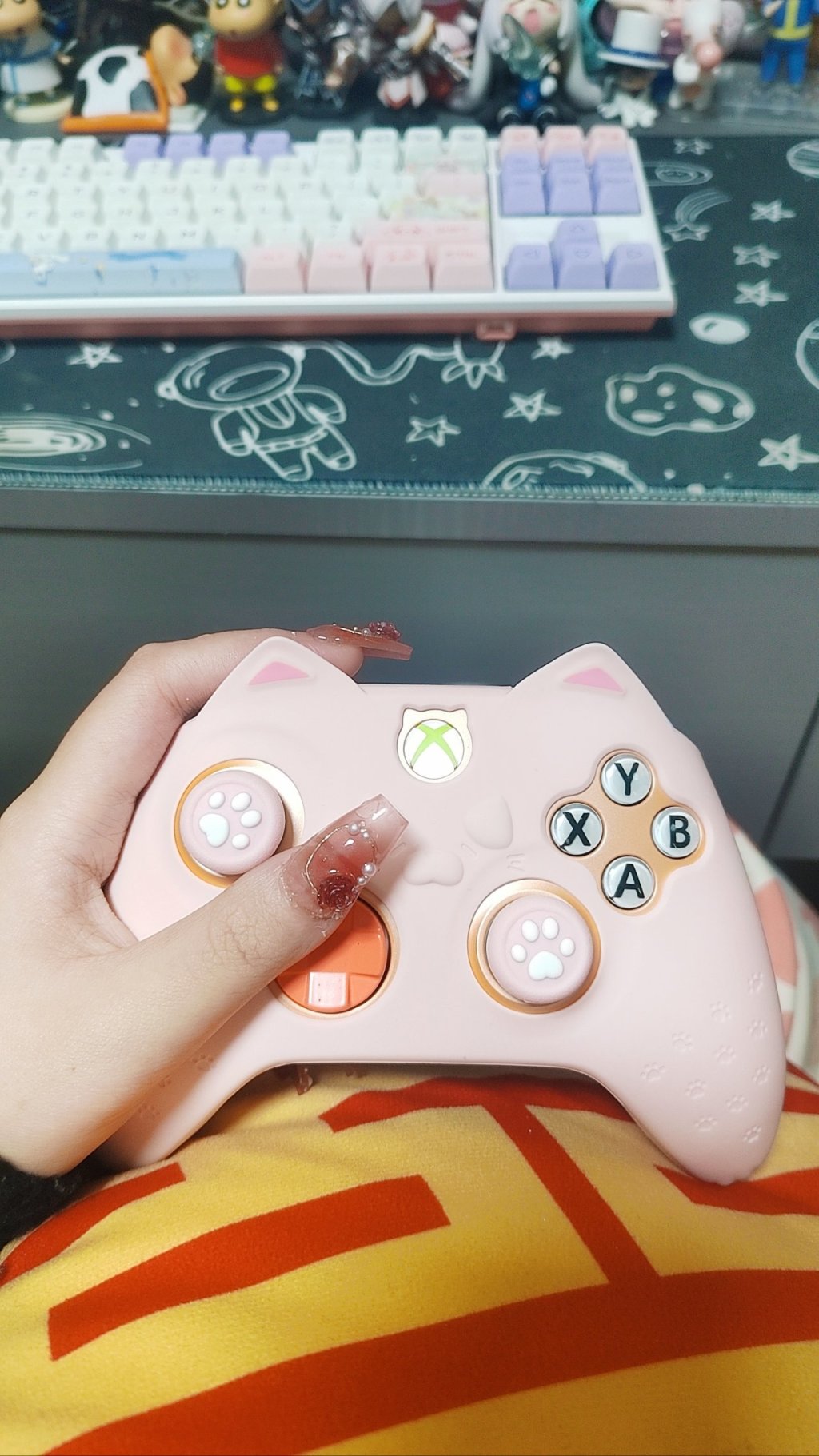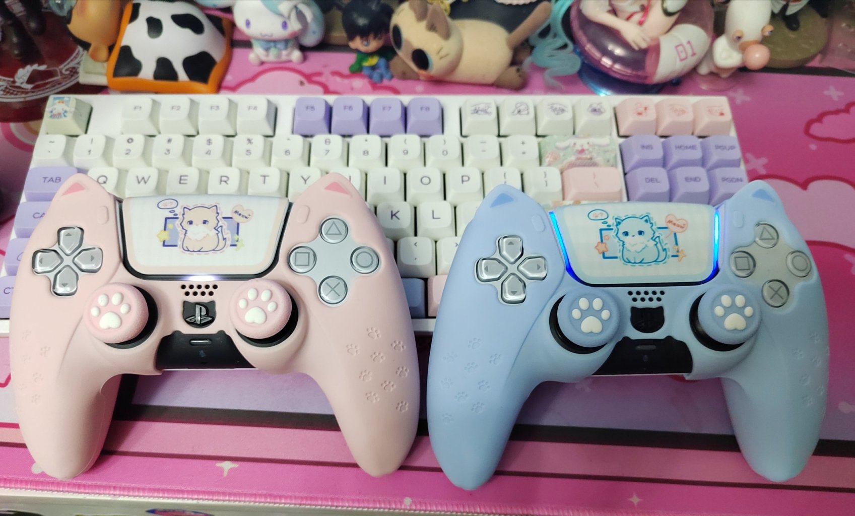 帶貓貓套的ps5手柄,但我個人並不喜歡帶套的手感,就平常帶套防一下塵,玩的時候取
