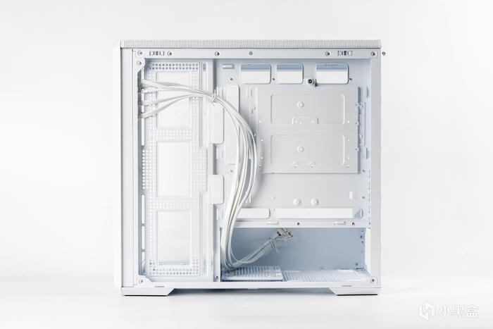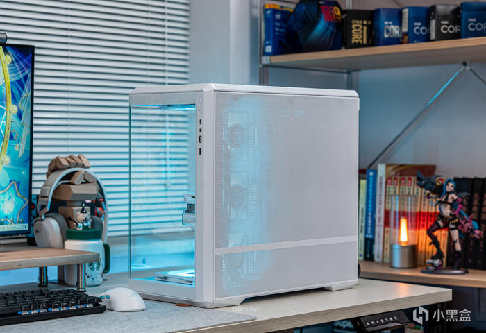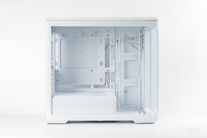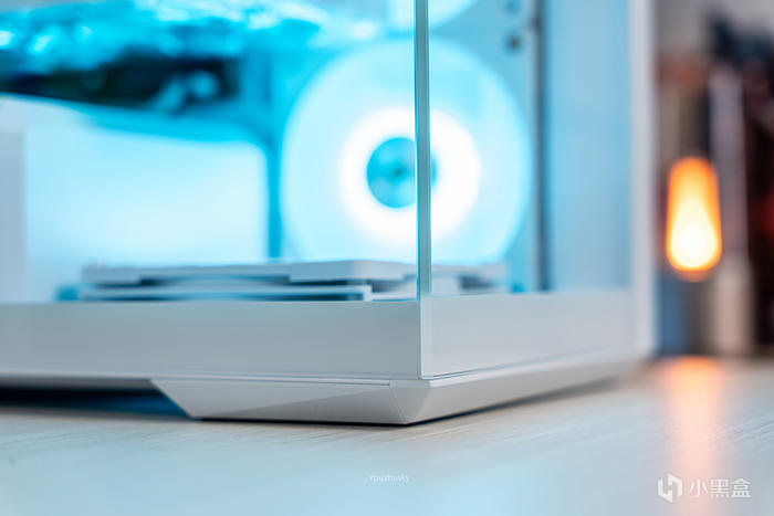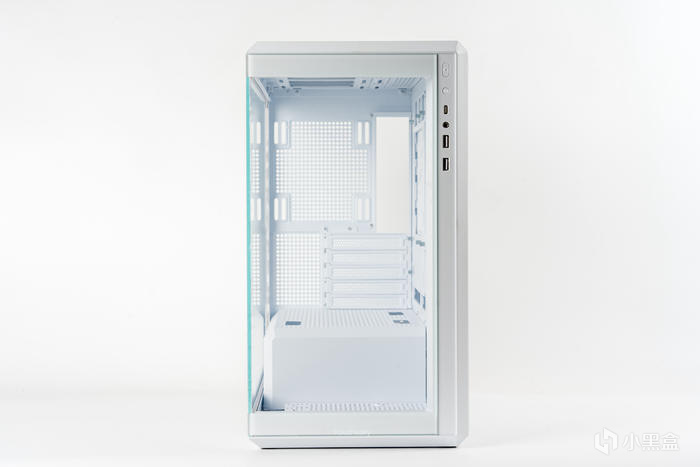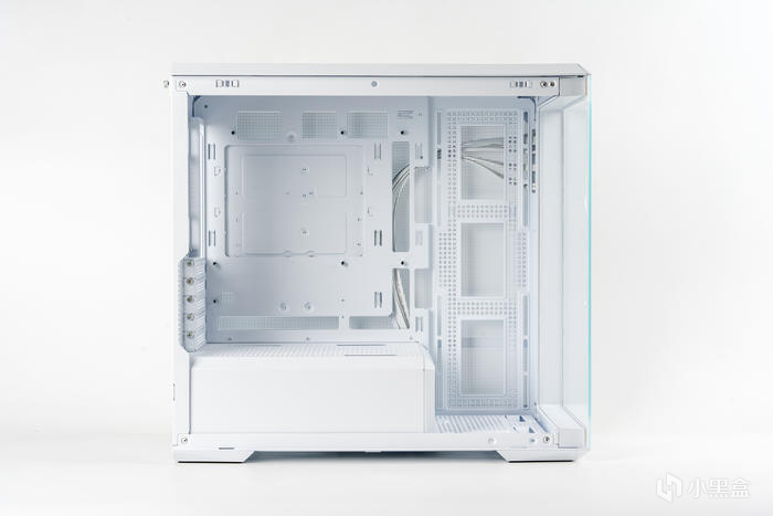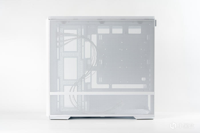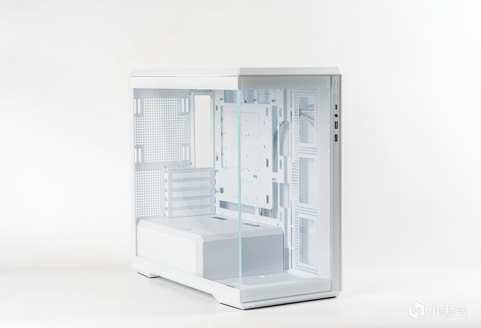 機箱的正側面,雙透的270°寬景設計,側透玻璃白邊遮擋設計使整體更和諧,全透鋼化玻璃也可讓內景一覽無遺