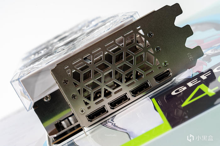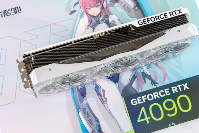 顯卡的頂部,一半爲顯卡散熱外殼,一半爲全平鏤空的出風設計,頂部與底部都是如此,可見4090顯卡功耗與發熱都不低