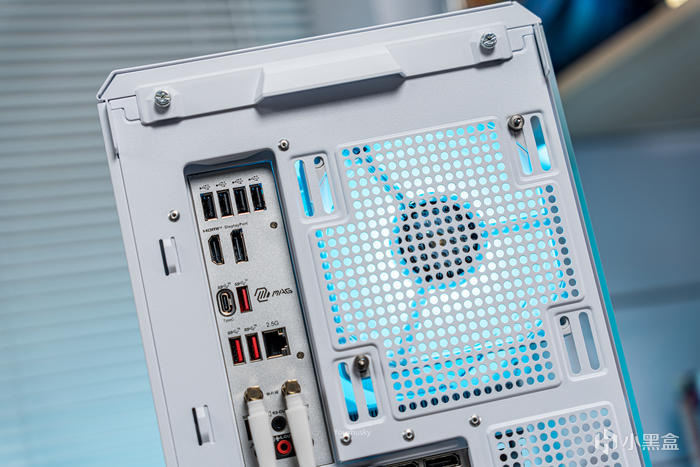 4090星曜背板上的尾部近1/3貫穿通風設計,可使第三把10mm風扇吹過的熱量能快速導出