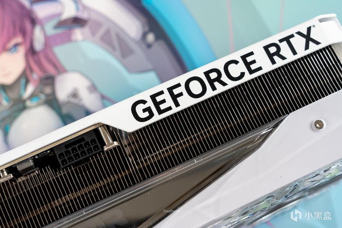 顯卡頂部右邊的GEFORCE RTX 的logo,爲背板的延伸,左邊是一個標準12VHPWR的600W標準接口