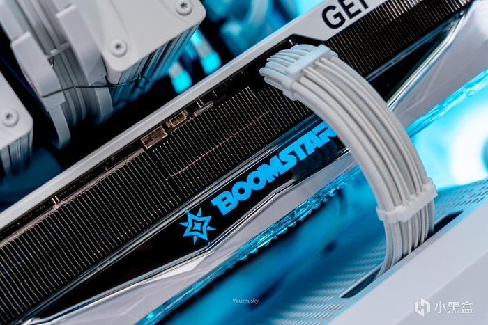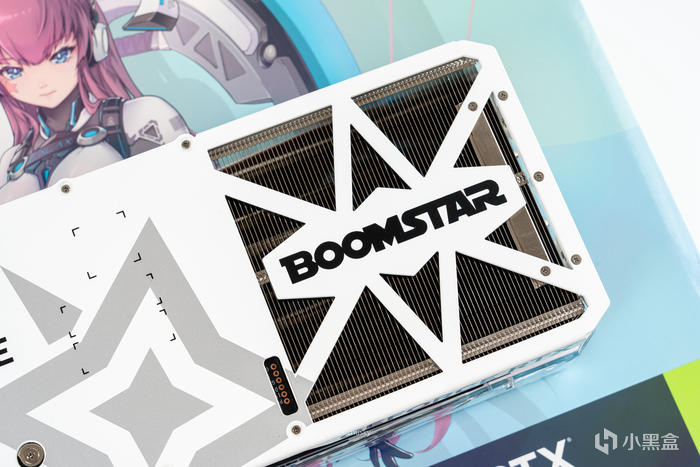 顯卡頂部散熱器上的BOOM STAR 的星曜logo,爲ARGB燈效設計,內部可受控於影馳XTREME TUNER軟件或者可接駁ARGB線纜受控於主板