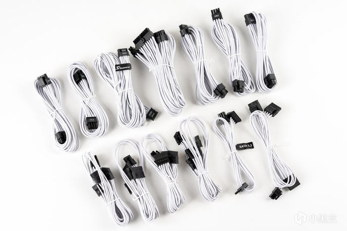 海韻應該是最先推出壓紋模組線的,這套原裝模組線其實也是經過了多次升級達到現在的軟硬適中、塑型和走線都非常方便的特點,高負載線纜同時還使用了16AWG高規格以及耐高電流端子