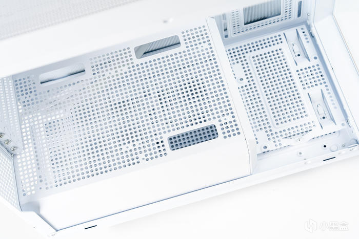 這裏電源倉的頂蓋上還可兼容2個12cm或者1個14cm風扇位,前底部也含有一個可拆卸12cm風扇支架