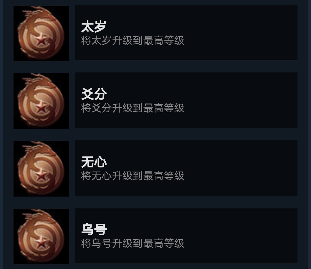 流程成就,跟着主線發展順序進入家園做支線就行。需注意支線《霒蝕》觸發條件是第四章和姬軒轅一起過赤水時聽三段對話,不然無法觸發。