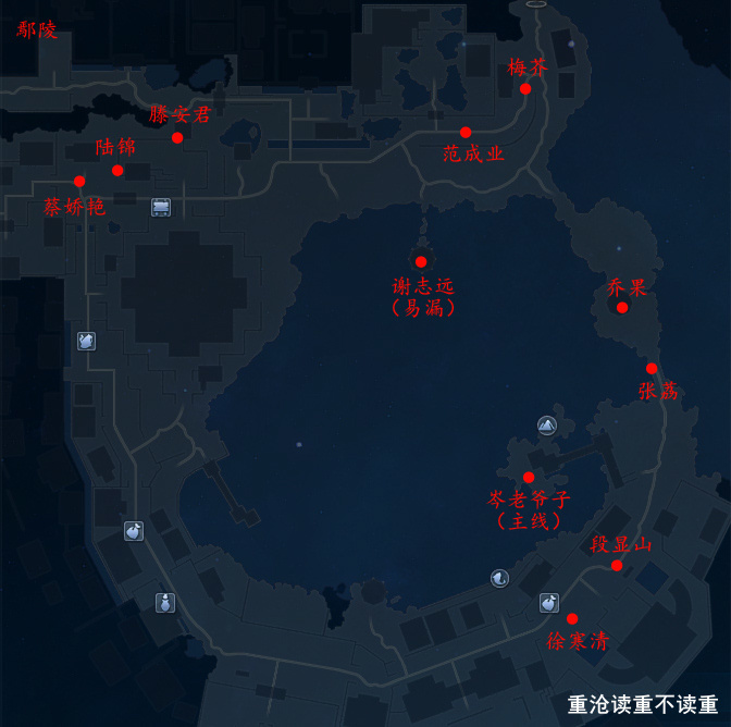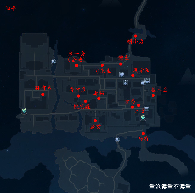可以打牌的角色位置標在下圖了。如果遊戲裏過去沒遇到那就是暫時還沒出現,隨着主線推移都會出現的。