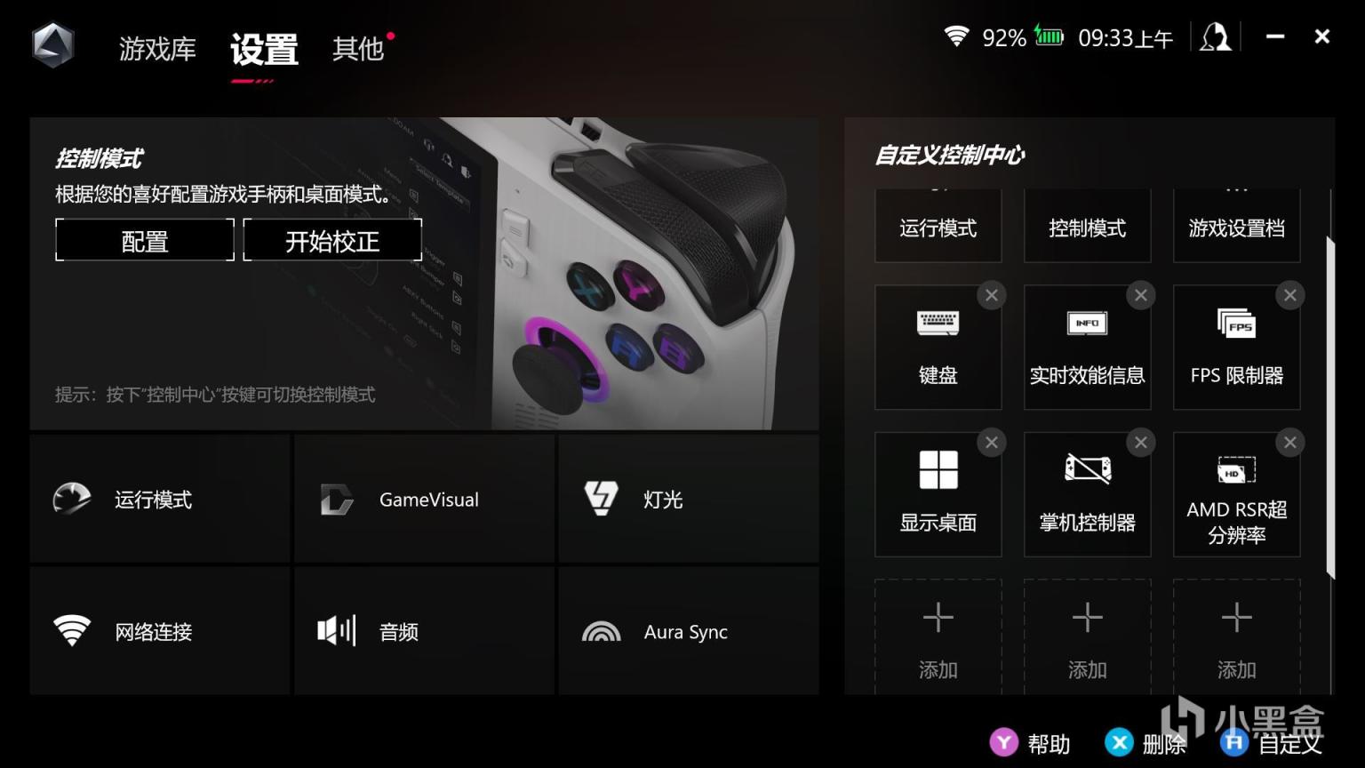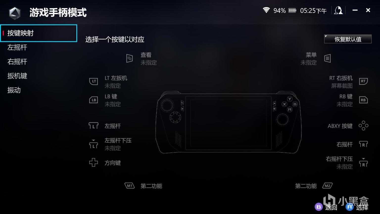 萬萬沒想到掌機搭配上特供版的奧創居然意外的好用。在掌機的正面玩家可以看到在在屏幕的最右兩邊分別有兩個按鍵,上面兩個相信經常用手柄遊玩遊戲的玩家會十分的熟悉,一個是菜單鍵,一個是地圖鍵,而下面的兩個按鍵則分別是奧創軟件引申出的對應按鍵,左邊的那個按鍵是在左側呼出奧創的控制中心,右邊的那個則是直接打開奧創軟件。同時奧創中這一次集成了非常多的功能,按鍵自定義,能效信息顯示,模式切換等等,這些在後面詳細說明。