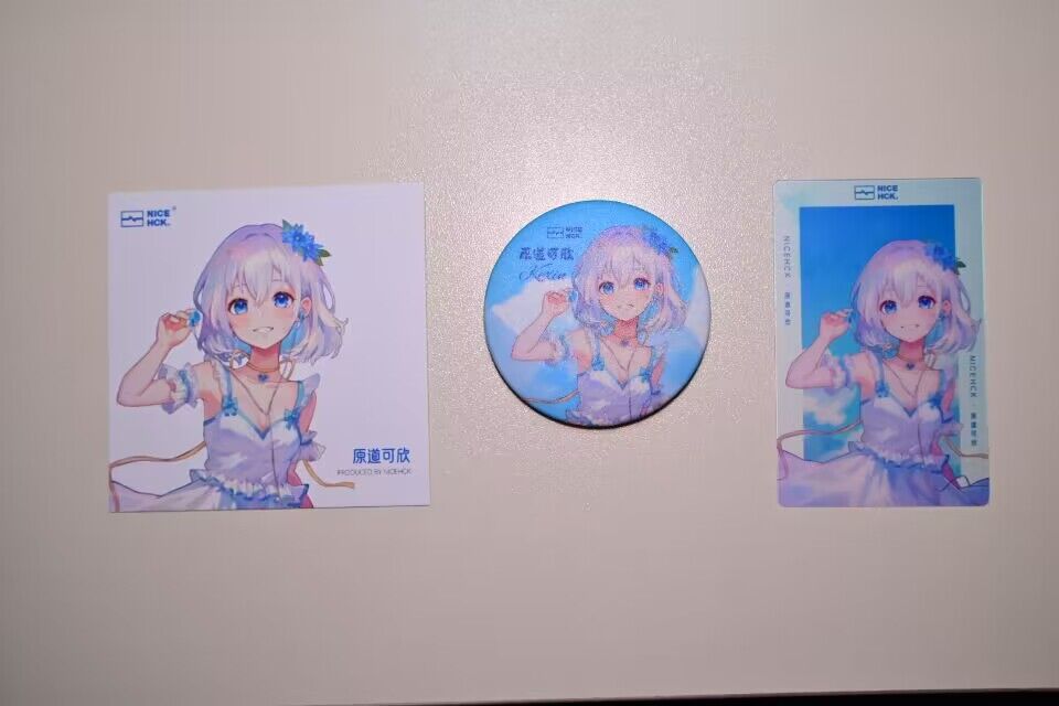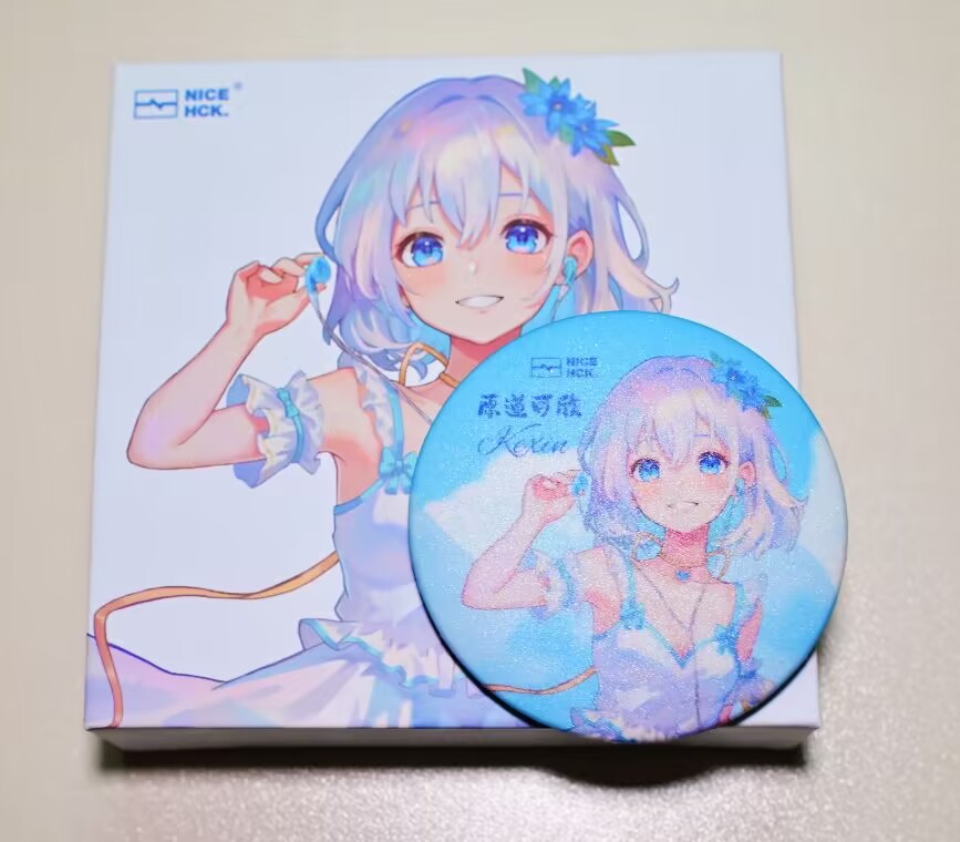 原道可欣的外包裝是一個天地盒,正面印着可愛的白髮蘿莉“原道可欣”(原道姬初長成),背面印着產品信息。此外,附贈了一個首發限量原道可欣二次元形象胸章,胸章表面是類磨砂材質,遍佈着許多BlingBling的小亮點,盤起來很有質感。