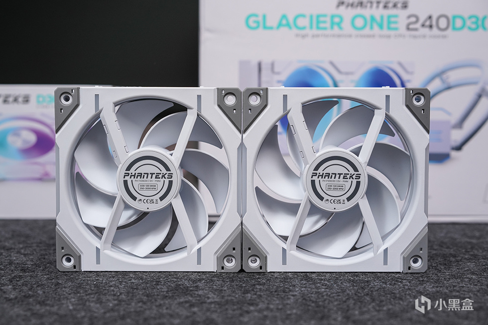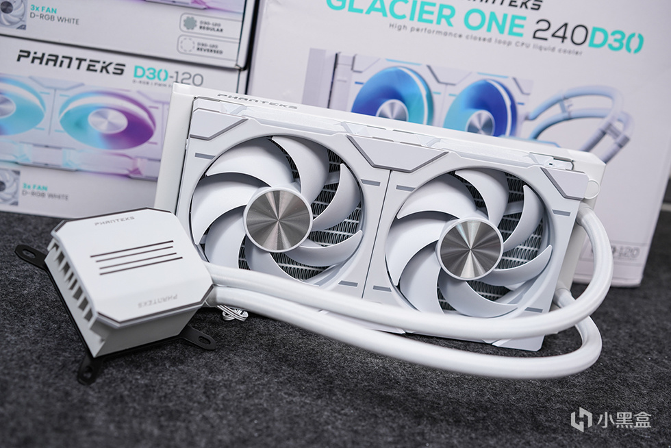 水冷搭配了追風者自家的D30-120風扇,將D-RGB照明系統與30mm厚度的空氣動力學風扇葉片結合起來。其整個框架和各面的葉片上配備了集成的D-RGB燈光元素,葉面反射來自於光環的光線,框架內的柔光燈珠,內側的照明環爲風扇葉片兩側提供了獨特的照明效果。