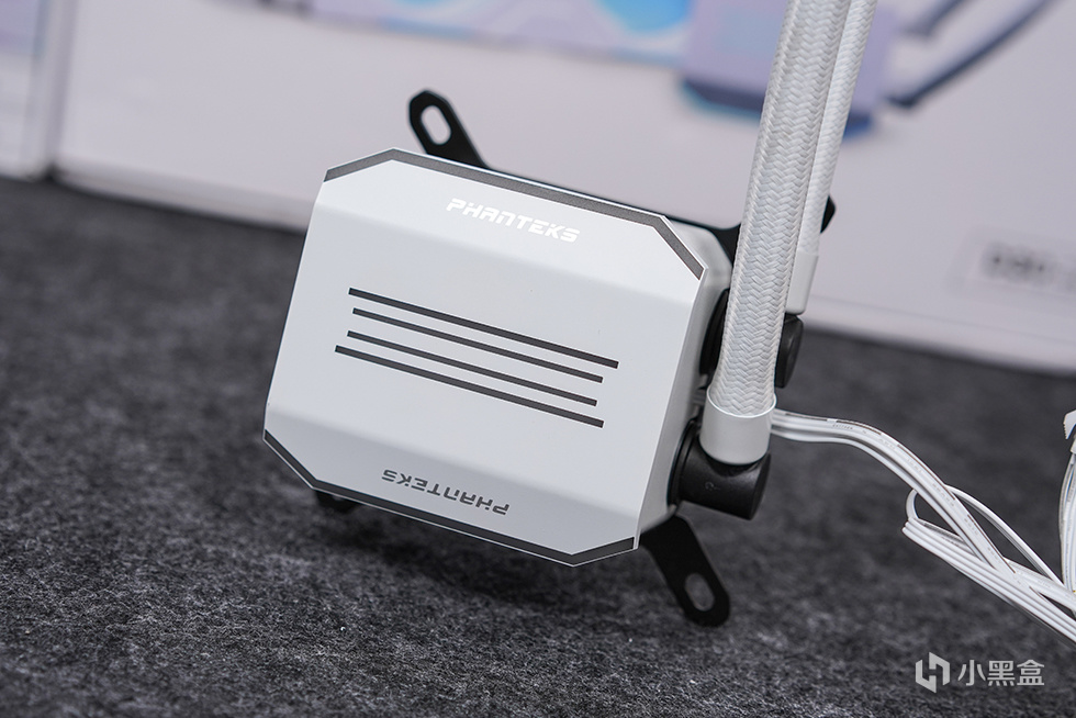 一體式的ARGB冷頭,水泵的頂蓋採用的是白色對稱的多邊形設計,中央部分的線條設計爲ARGB氛圍燈,支持多款主板的燈效控制軟件。