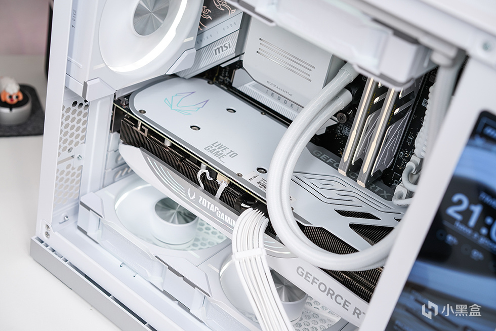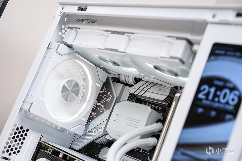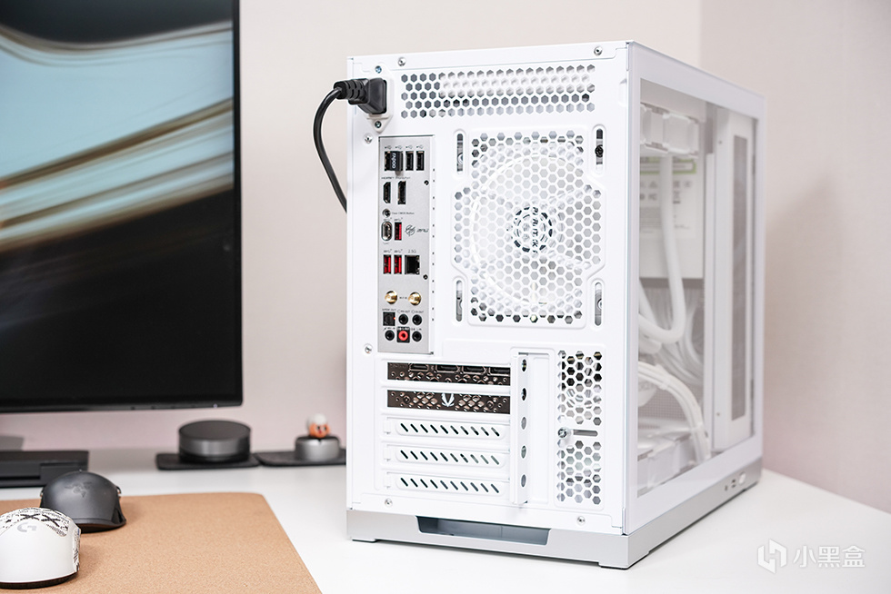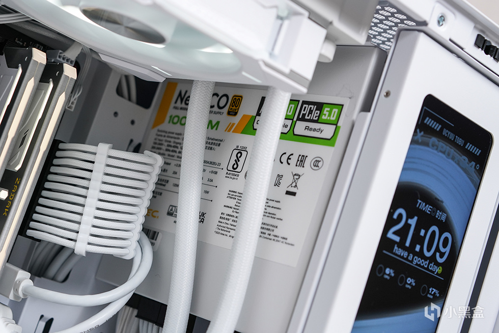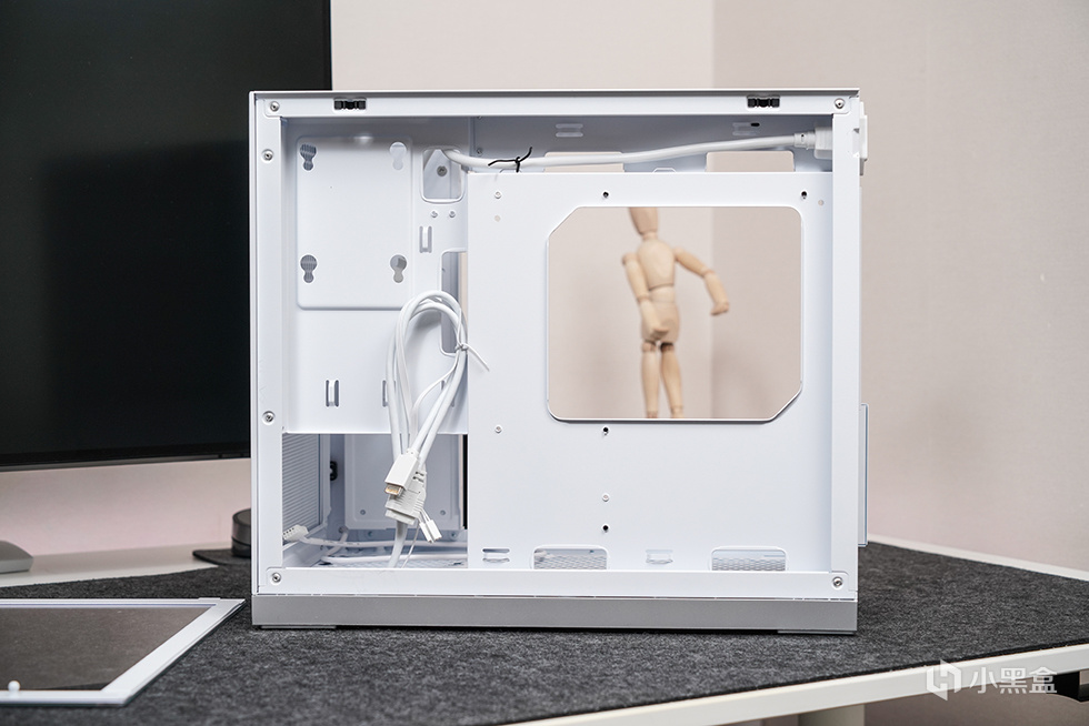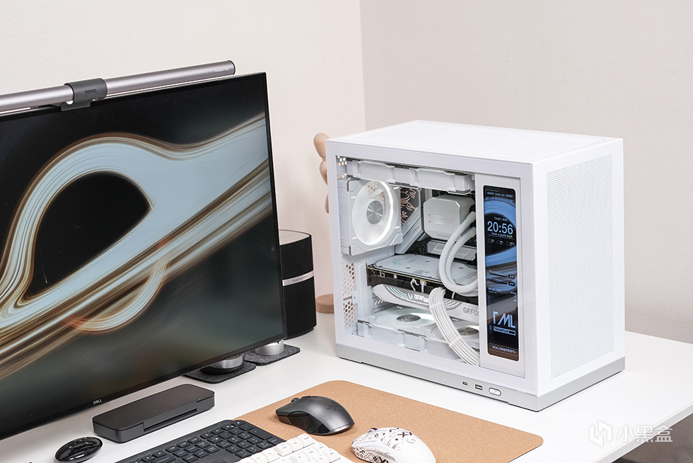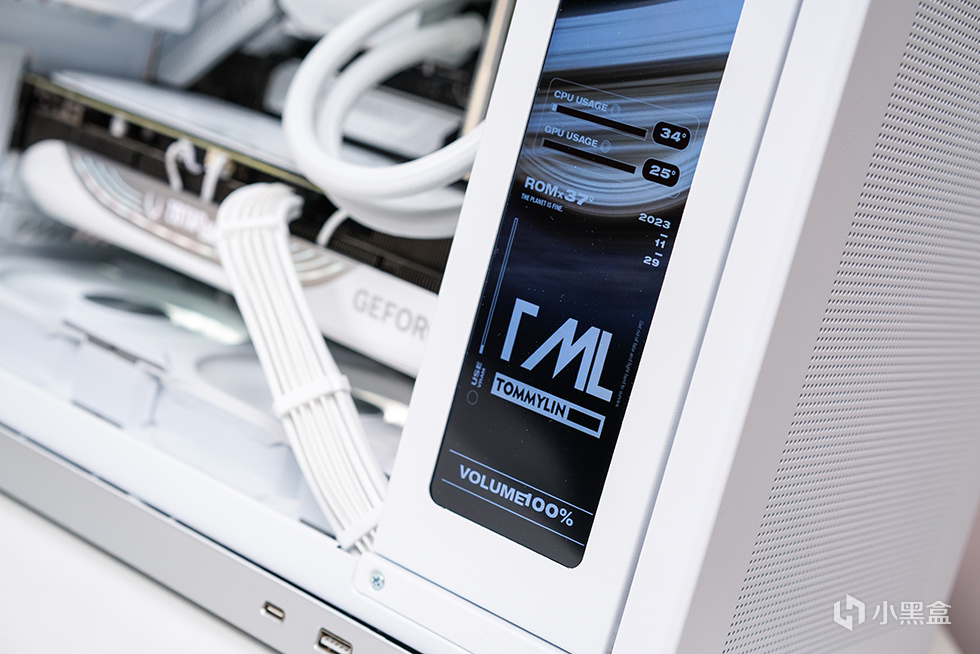白色主體搭配了銀色的底部窄邊框架,使得整體方正簡潔的設計不會那麼單調,高透的玻璃側板能更好的展現內部硬件結構,原本側面的裝飾蓋板換成了11.3寸的副屏,個性一下子就出來了。