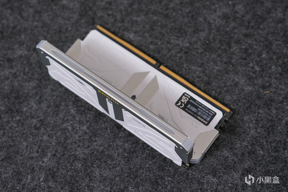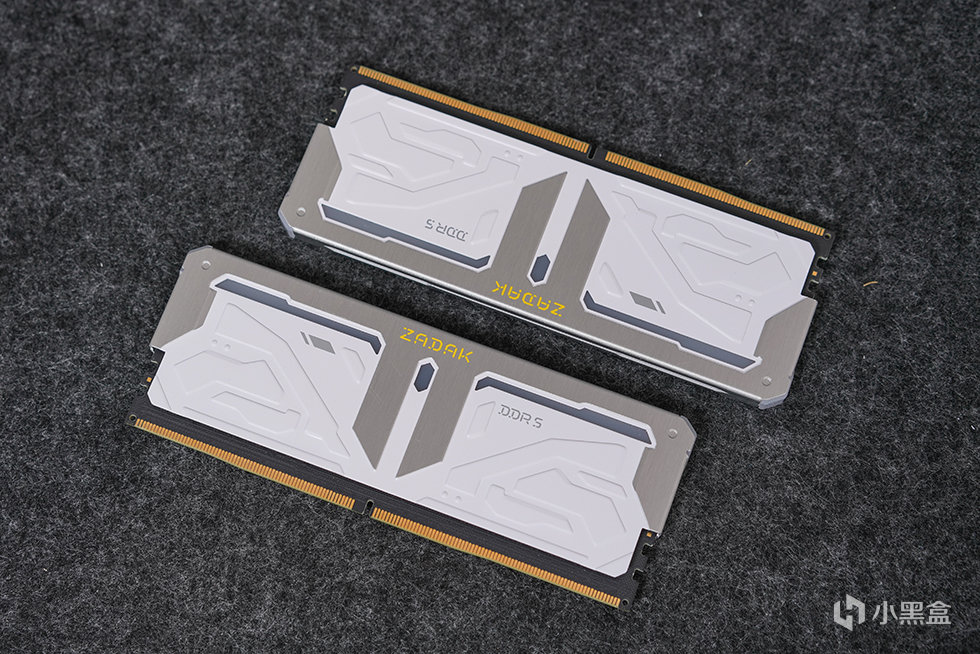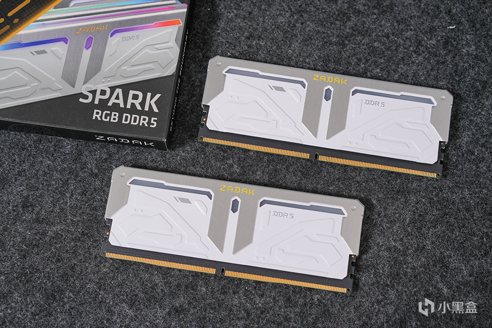 ZADAK SPARK RGB DDR5採用三星顆粒,在保持性能的基礎上外觀搭配RGB炫彩燈光和寶石設計風格的白色散熱馬甲,頂部採用髮絲紋鋁合金裝飾條包裹,錯落疊加的設計呈現綴有寶石形狀的鏤空導光效果凸顯濃郁電競風格。