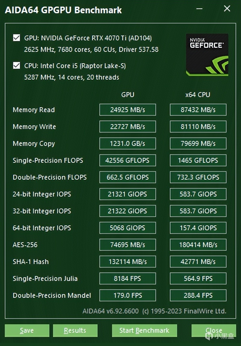 顯卡來自索泰的RTX 4070 Ti TRINITY OC,採用了全新的Ada Lovelace GPU架構,擁有5組GPC,共7860個CUDA核心,240個第四代Tensor核心、60個第三代RT核心和30個ROP光柵單元。配有48MB二級大緩存、192-bit 12GB顯存,頻率在2310-2625MHz,使用的是AD104-401核心,供電方案使用的是9+2相SE.P 2.0供電系統,TDP爲285W。