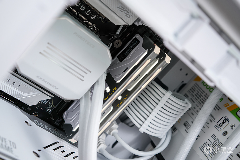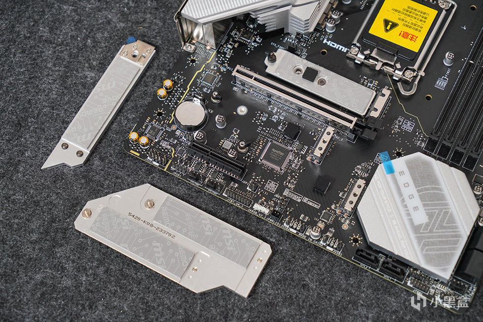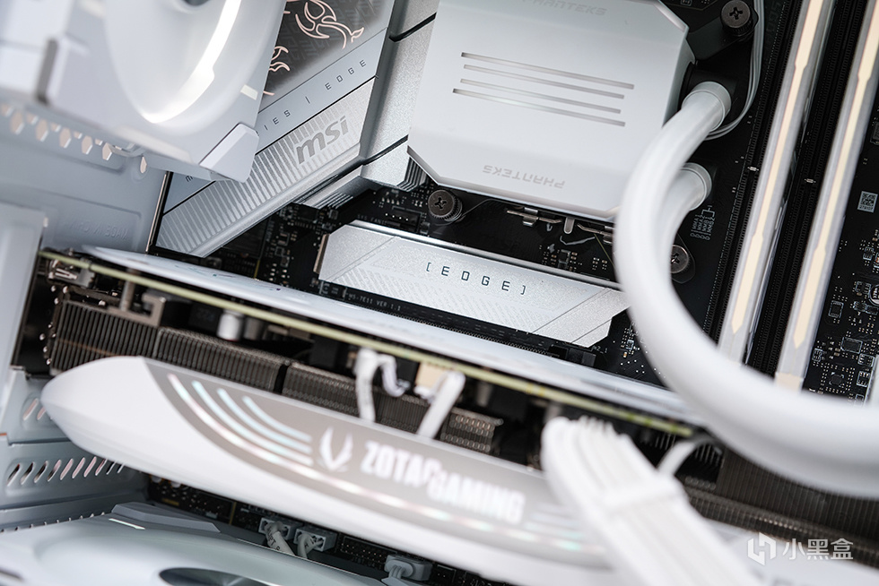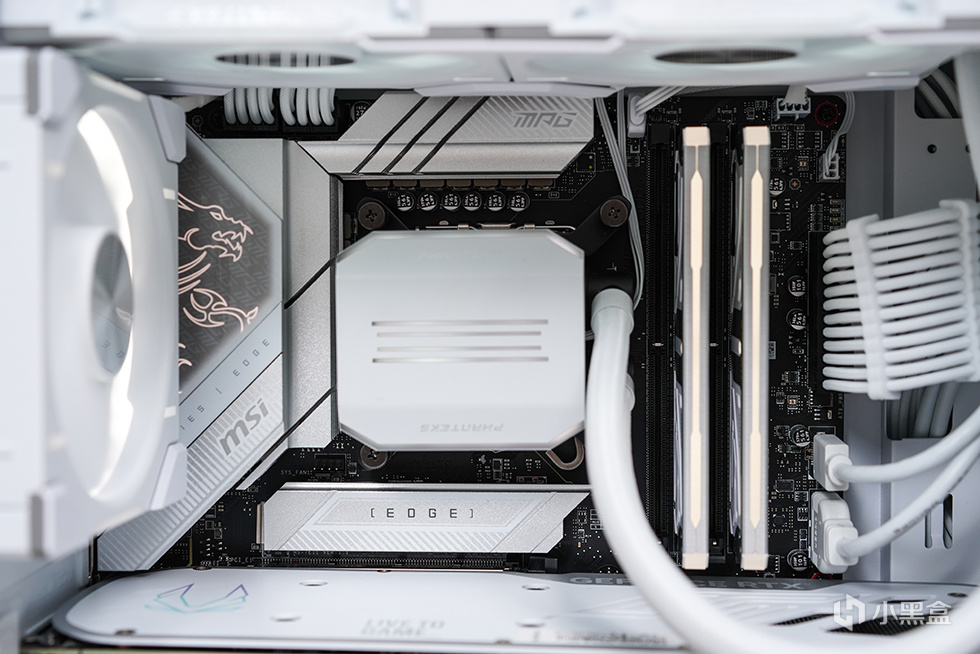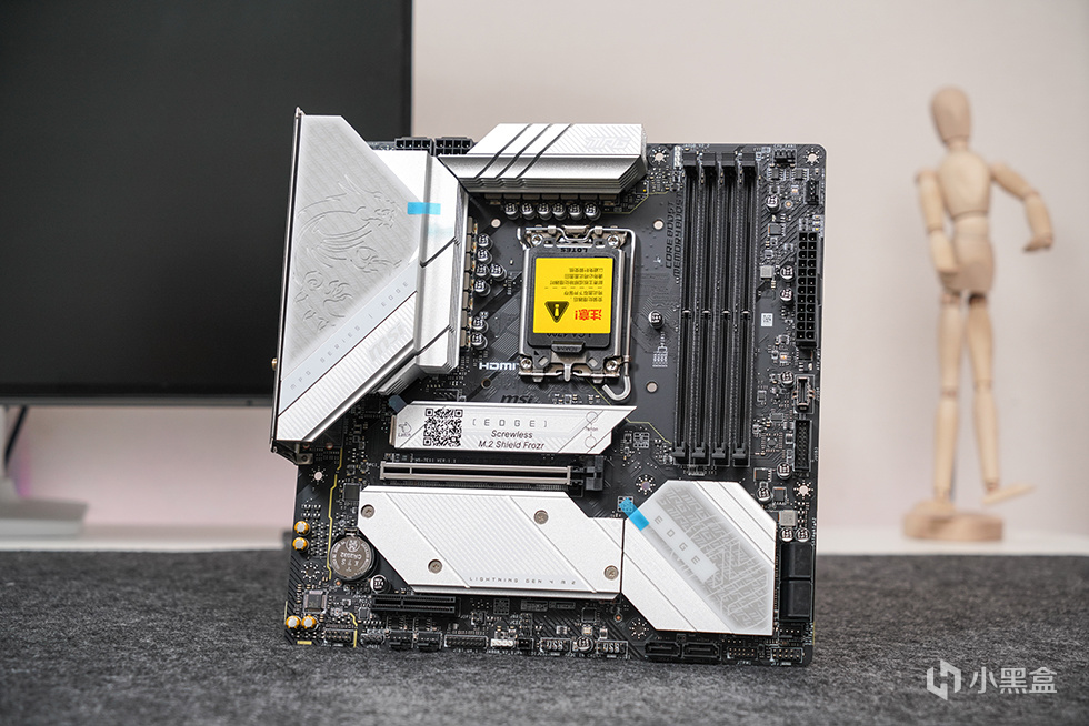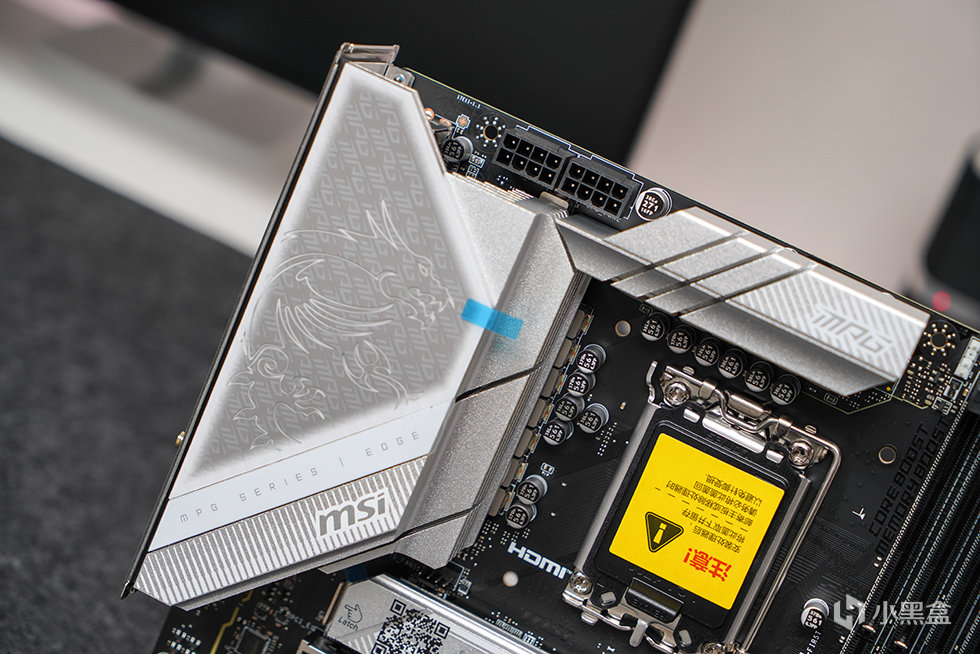 主板來自微星MPG B760M EDGE TI WIFI主板,延續了刀鋒系列的優雅的銀白配色,配合MATX版型更適合打造緊湊型白色PC裝機。這不僅是對美學的追求,也體現了微星在細節上的精心打磨。更大範圍的一體化的散熱裝甲設計不僅美觀,還提供了更好的散熱穩定性和耐用性。