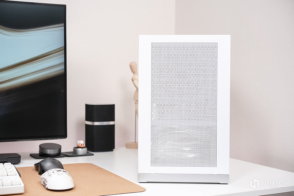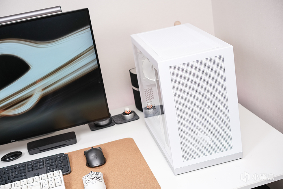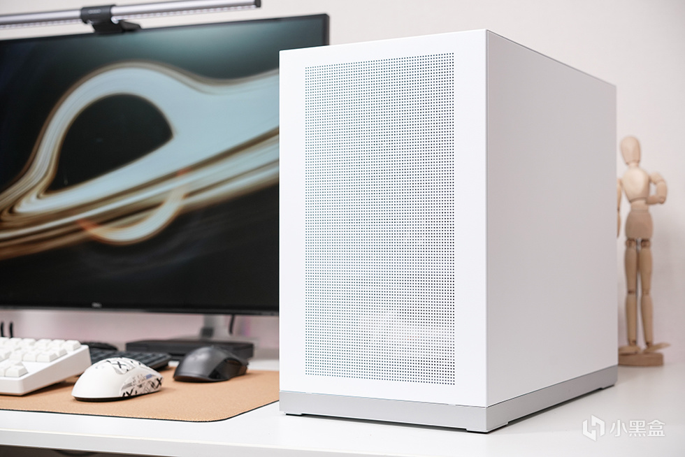 作爲一臺緊湊型MATX主機,403x219x355mm的體積放在桌面上剛剛好,不會佔用桌面過多的空間,更不會顯得臃腫,白色的塗裝也提升了整個桌面的亮度,搭配上暖白RGB燈光,在這個冬日裏還是很溫馨的。