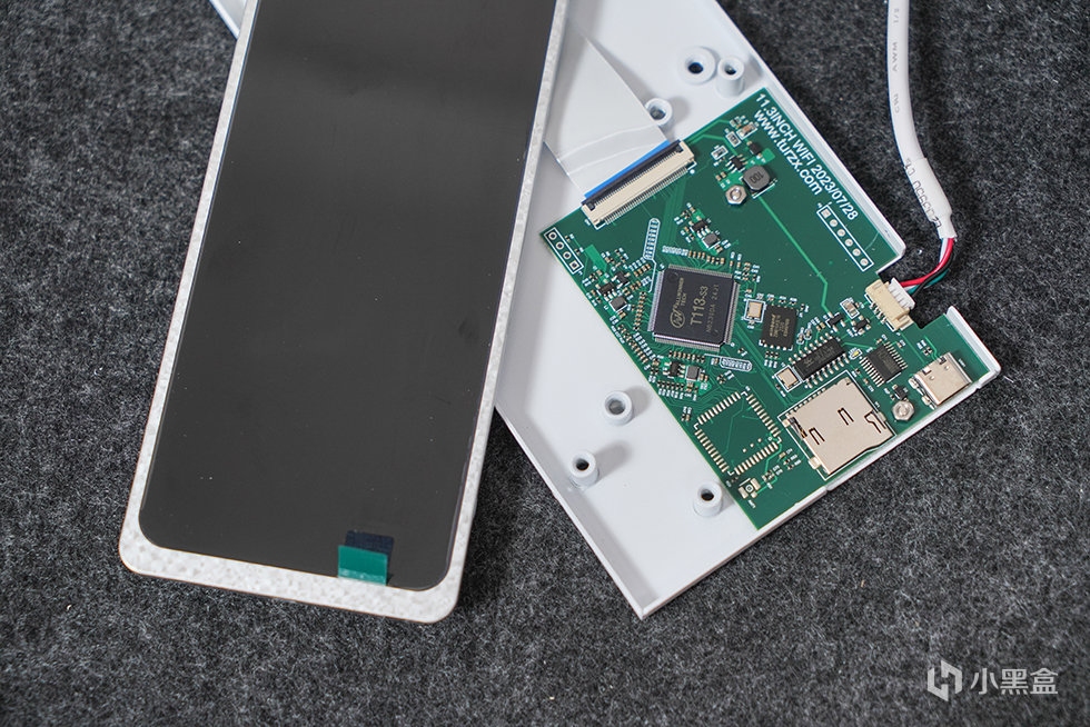拆開外殼後可以看到內部的PCB驅動板來自圖靈智顯,預留了一個TF卡槽和TYPE-C插口,說明還有更大的可玩空間。