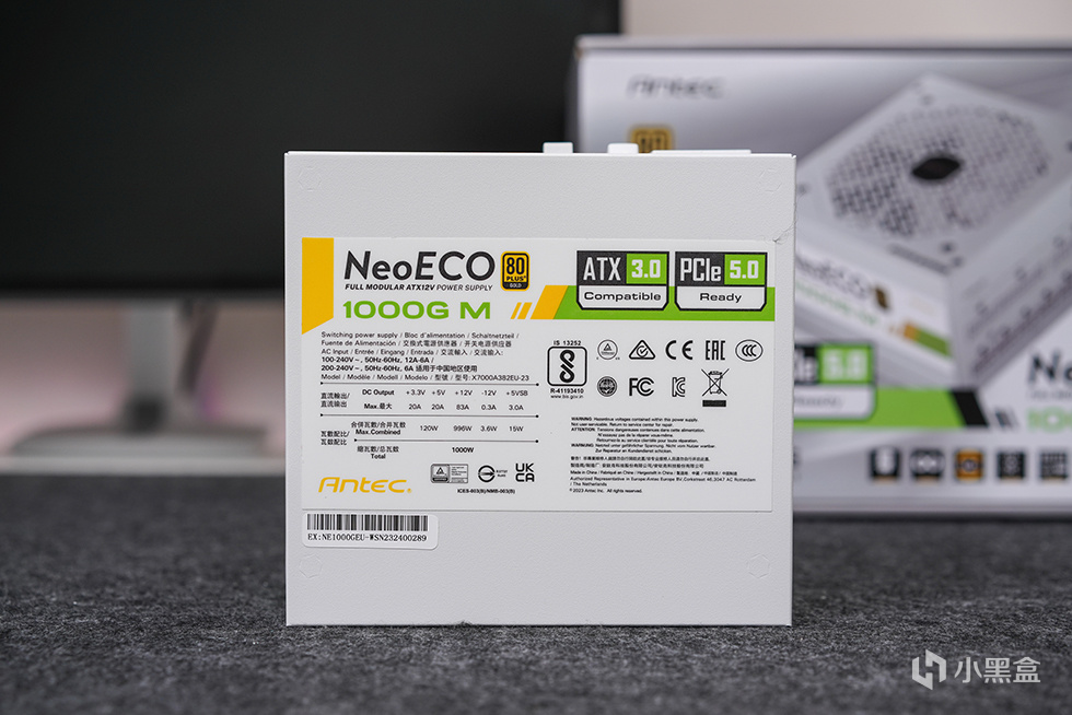 白色款的 ANTECNeoECO 1000G M,通過了80PLUS 金牌認證。全模組設計,採用全日系電解電容,高規格銅片式變壓器,無導線輸出模塊。150*140*86mm的小巧尺寸在兼容性方面有着更好的表現。