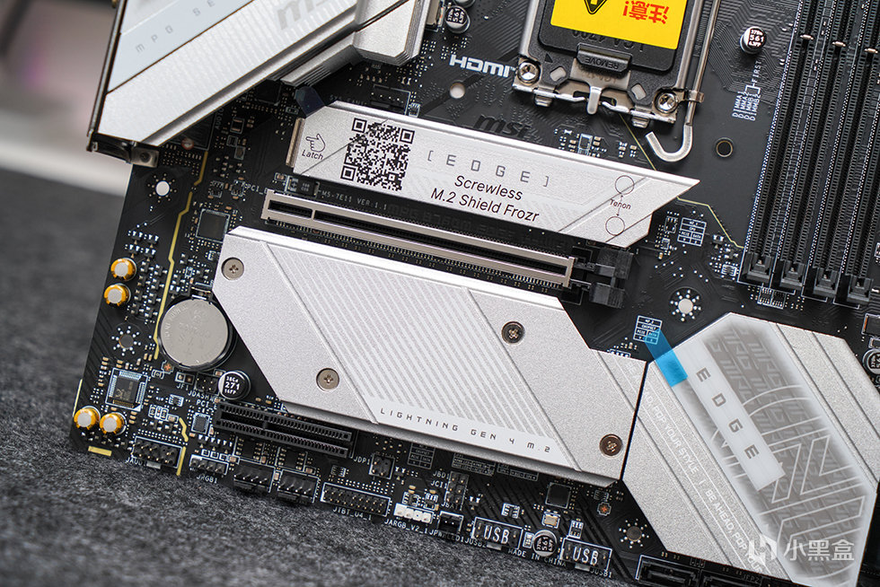 一個m.2槽位配備獨有的 SCREWLESS M.2 SHIELD FROZR 免工具快拆散熱裝甲,拆卸更爲方便。