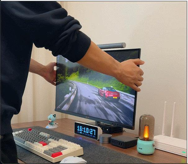 经过调节,松能T7-1H显示器支架几乎实现了对显示器的零重力支撑,可以轻松抬升或降低显示器的高度。屏幕支持150-260mm的高度升降,只需轻抬轻按屏幕就可完成。