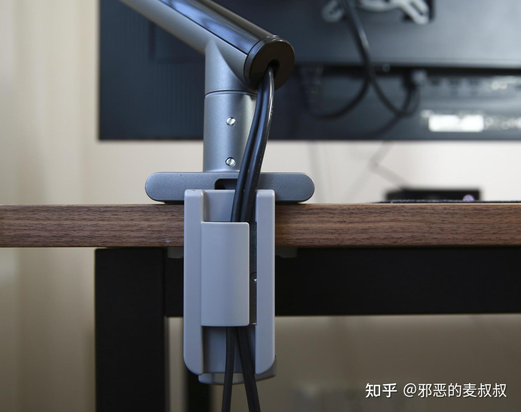松能T7-1H做工精致,看得见和看不见的地方都很光滑无毛刺,毕竟是获奖产品,细节不会马虎。安装方式支持目前主流的两种安装模式:穿孔安装和夹持安装,两种安装方式都很稳固,因为我的桌面是整张木质桌板,并没有预先打孔,所以采用了夹持安装。
