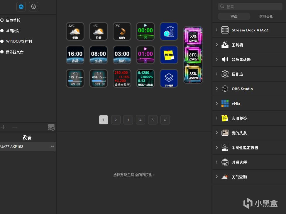 那控制檯本身,強大的拓展性是其本身立足的根本,不然真的就只是一個桌搭了,那AKP153的拓展性怎麼樣呢?我只能說,很好很強大,它除了顯示各種數據之後,可以快捷定向到網頁或者軟件的點擊,其本身也原生支持OBS等軟件,至於虛擬主播的表情控制等方面更是不在話下,無論你是常規的遊戲直播博主還是虛擬主播,AKP153都完全值得一試,其15個按鍵都可以進行自定義,還是非常夠用的。