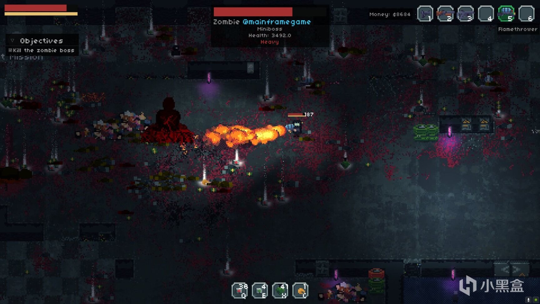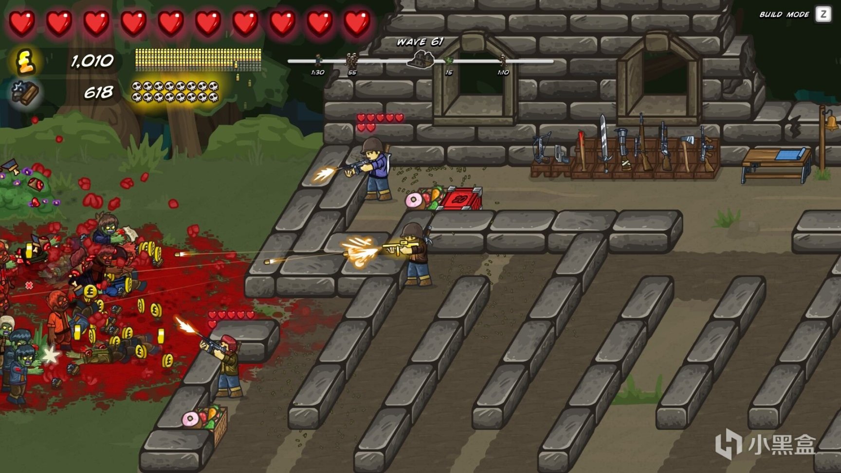 一款上帝视角,复古的僵尸射击类游戏。玩法很简单,类似于血腥大地,在僵尸的进攻潮中存活就行。不过玩家还可以从尸体上搜集非金属来建造防御设施,比如机枪台。