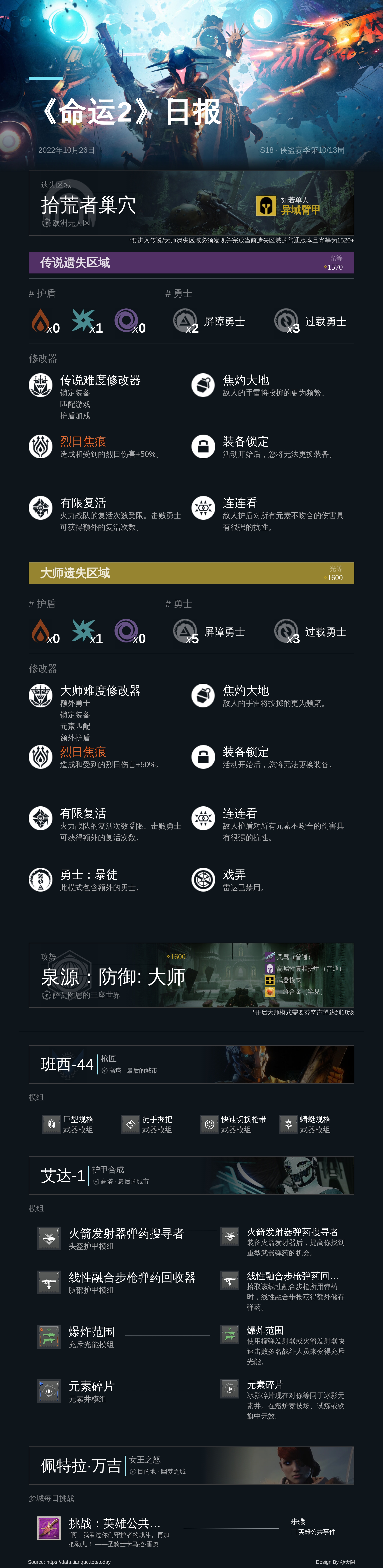 《命运2》日报 - 2022年10月26日