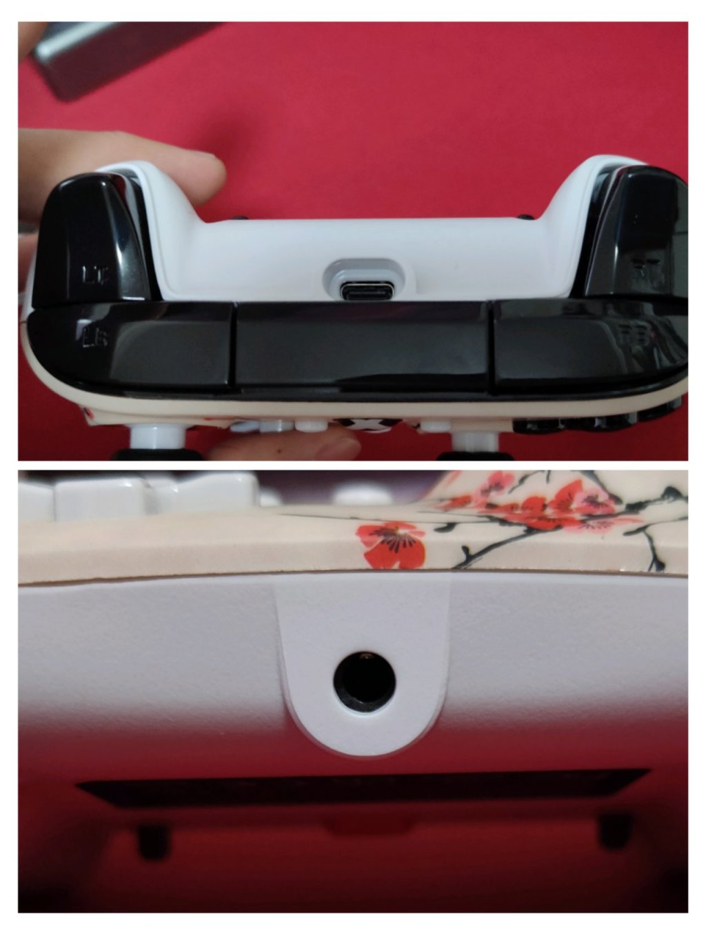 模具方面延續了之前POWERA手柄的外觀,上側的兩個肩鍵十分平整,輕觸起來十分舒服。耳機的底部呢爲3.5mm耳機接口。