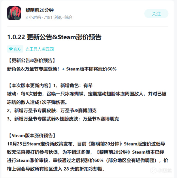 《黎明前20分鐘》Steam售價調漲預告