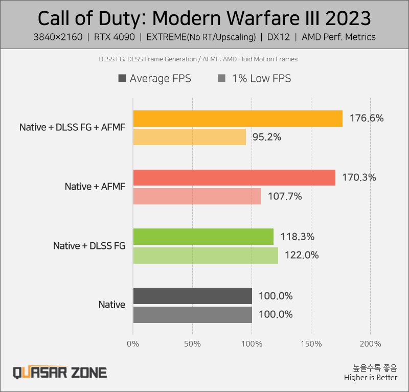 AFMF 和 DLSS 3 FG 都是共同的幀生成技術。不過,由於 AFMF 是 AMD 驅動程序的功能,而 DLSS 可以在 GeForce RTX 40 系列或更高系列中使用,因此它們本來是不兼容的技術。