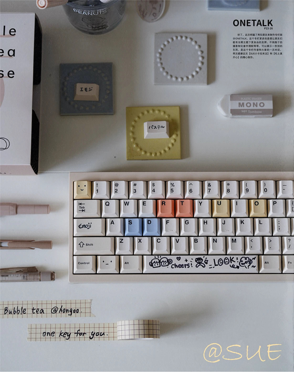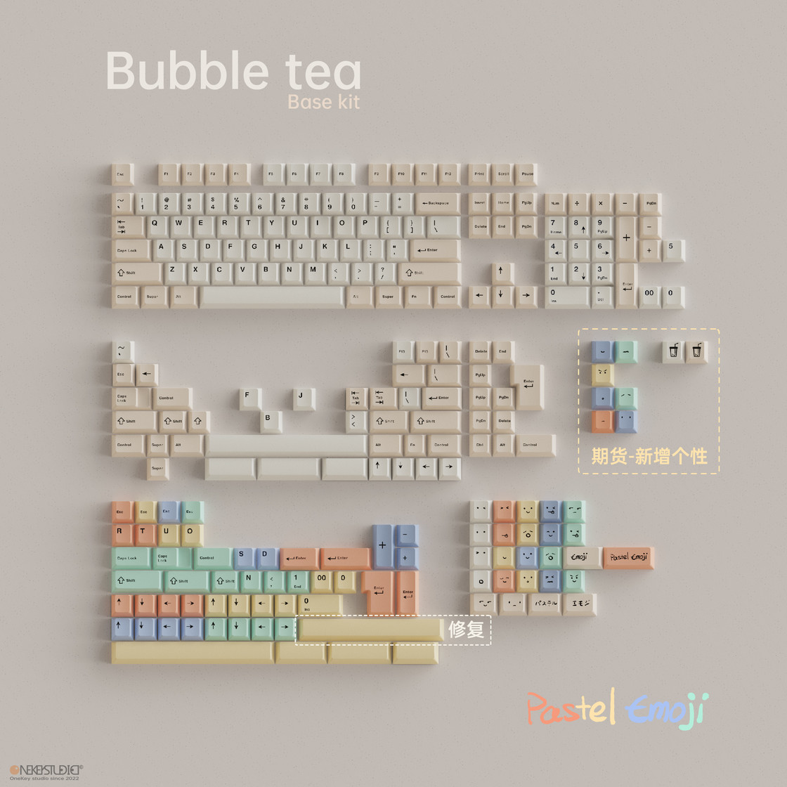 这款键帽是由OneKey studio设计的一款奶茶风味键帽,灵感来源于珍珠奶茶。