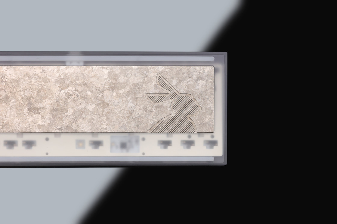 说回套件本身,PC版本没太多好说的,背面冰晶钛兔子配重是biip设计的,还是蛮好看的,不过整体没太多变化,这次的TOFU FA则是只能选用O-ring mount模式安装,按KBDfans的手感偏好来看,即便是O-ring mount,也不会调教的太软,估计定制的胶圈是那种偏致密紧实的类型。