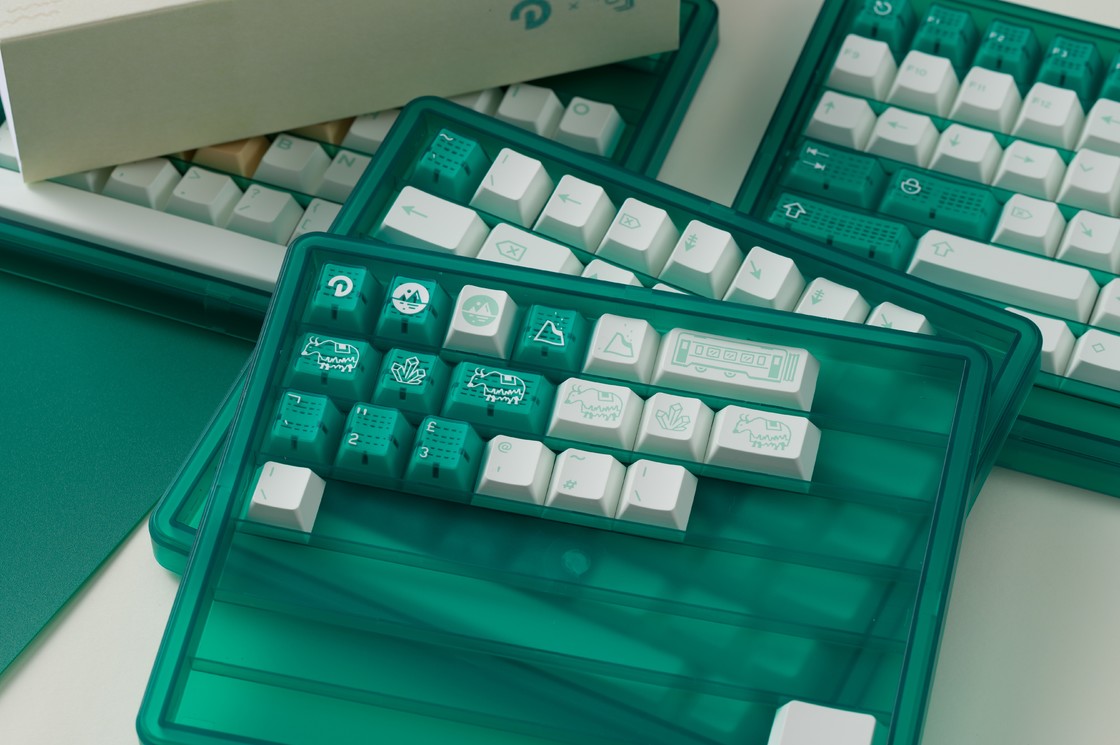 渐变过度搭配半透设计,为整套键帽增添了层次感和深度,和盐湖的景观进行了结合,整体设计感觉平和、自然而独特。不过这样的设计是很挑外壳颜色的,非同色系的渐变设计,想要搭配撞色外壳有点难。