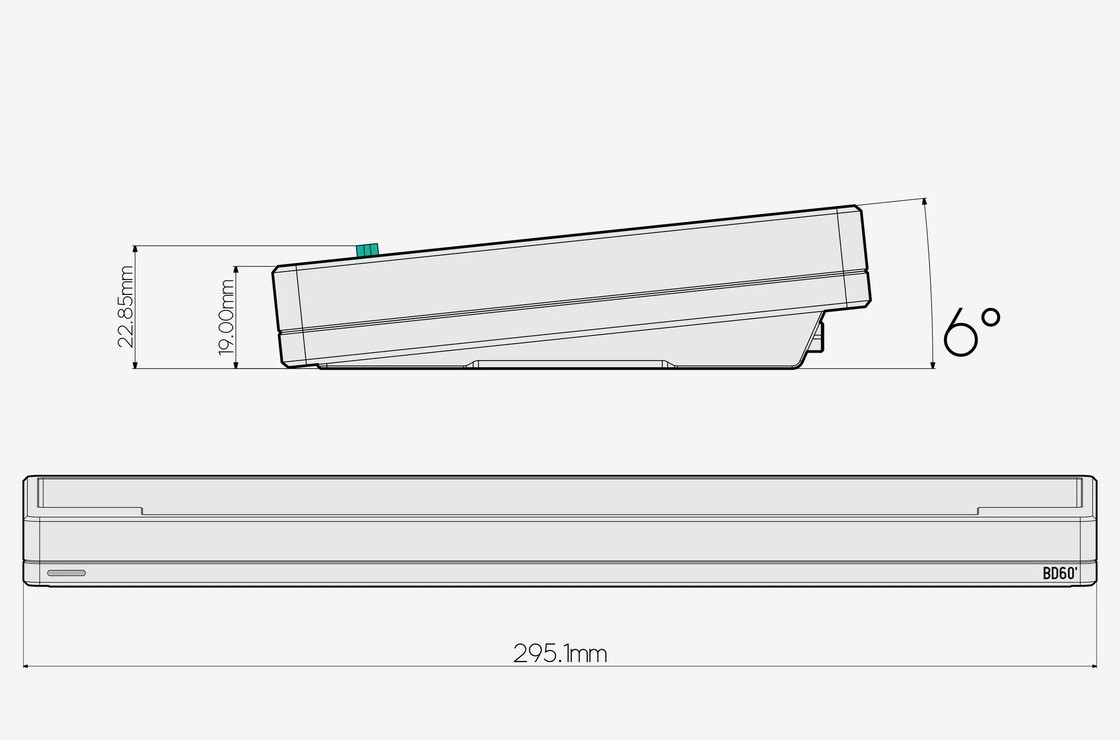 BD60’整体形状简约,强调直线和圆润的边角。对鲍勃·迪伦的致敬体现在几个方面,包括抽象化的口琴设计、底壳内部阴刻的Bob Dylan歌词以及右下角的BD60’标识。线条的直锐和大开大合的切割,复古上下盖设计,接缝处留有一道细狭的腰线,而背面的倒角设计和上下宽而两边收窄的边框比例赋予键盘一些干练和独特的感觉