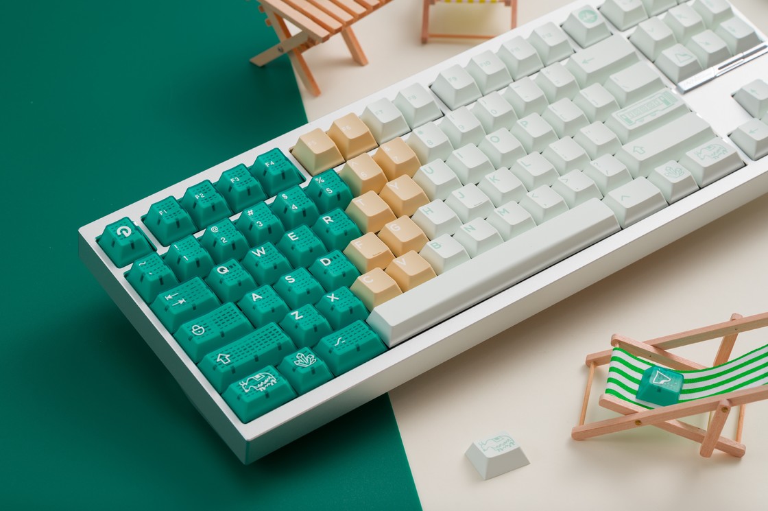 其实这套键帽视作奶茶底色的WOB问题也不大,不过奶茶的属性其实不算太突出。相较于泰式奶茶、香芋奶茶、红豆冰沙等作品,这款键帽配色上其实比较难一下联系到奶茶上面,但奶茶的基调本就如此,平淡无奇。