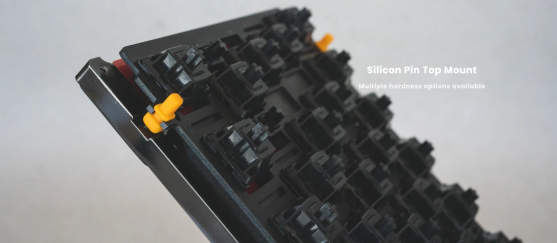 内胆方面,选用了Silicon Pin Top Mount,可以看做是一种Gasket的变体或者胶钉改良版本的TOP,将内胆卡在四周的硅胶支撑柱上,采用这套方案里比较经典的键盘是Frog TKL。