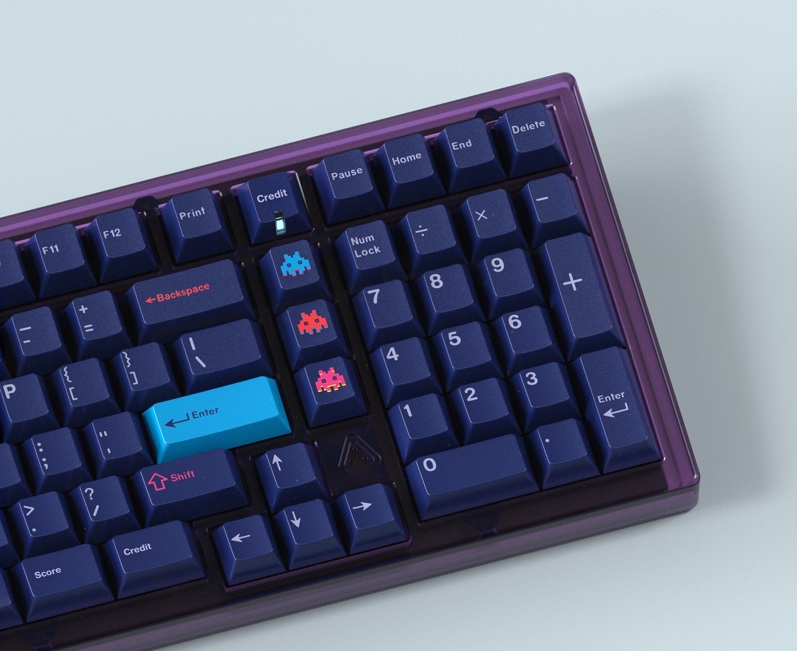 这款键帽是由Nukz(努克兹)设计的一款复古游戏主题键帽,灵感来源于太空入侵者。该作者此前还设计过PBTfans折纸。