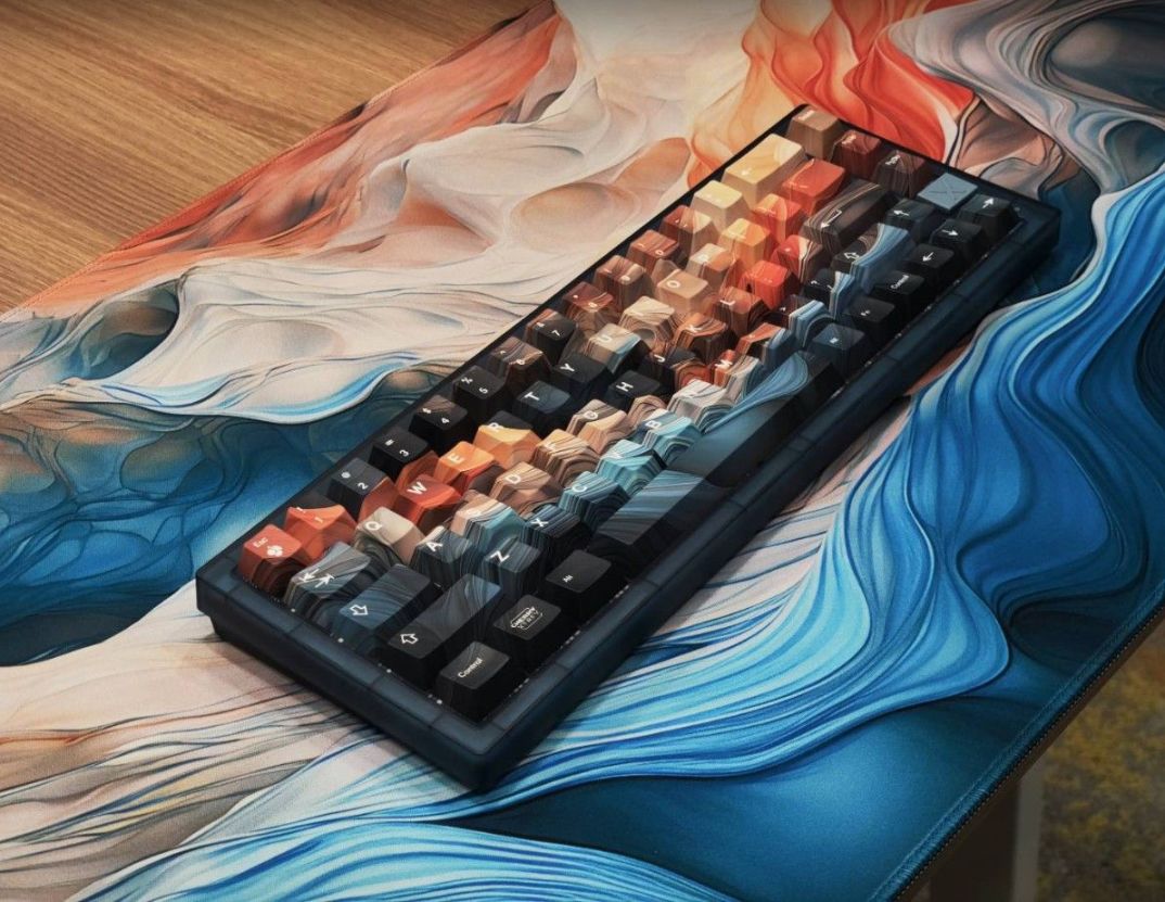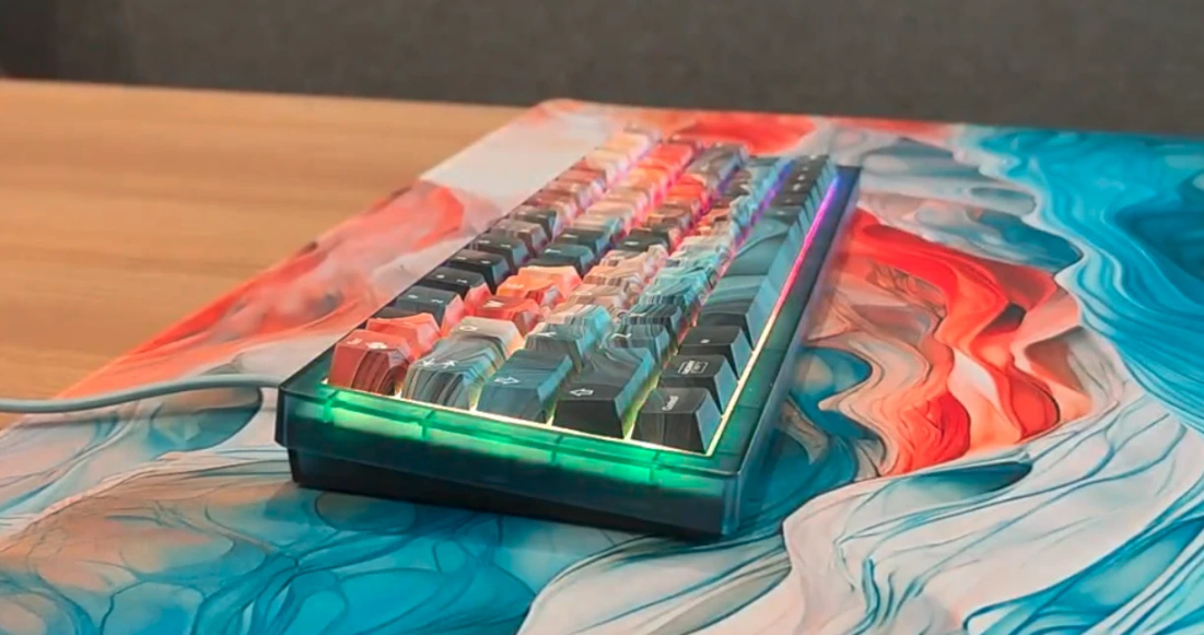 键盘和桌垫放在一起,完美地色彩线条融合,赏心悦目。